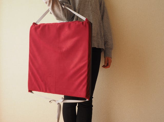 40cm×40cmと大きく厚さ4cmのウレタンで座り心地が良く快適です。ご自宅や車で出かけるアウトドアで活躍します。