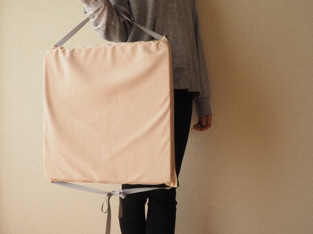 A4サイズで一番小さく鞄にすっぽり入ります。お出かけ先でひんやりする椅子や冷たい床の上に立たないといけない場合に役立ちます。