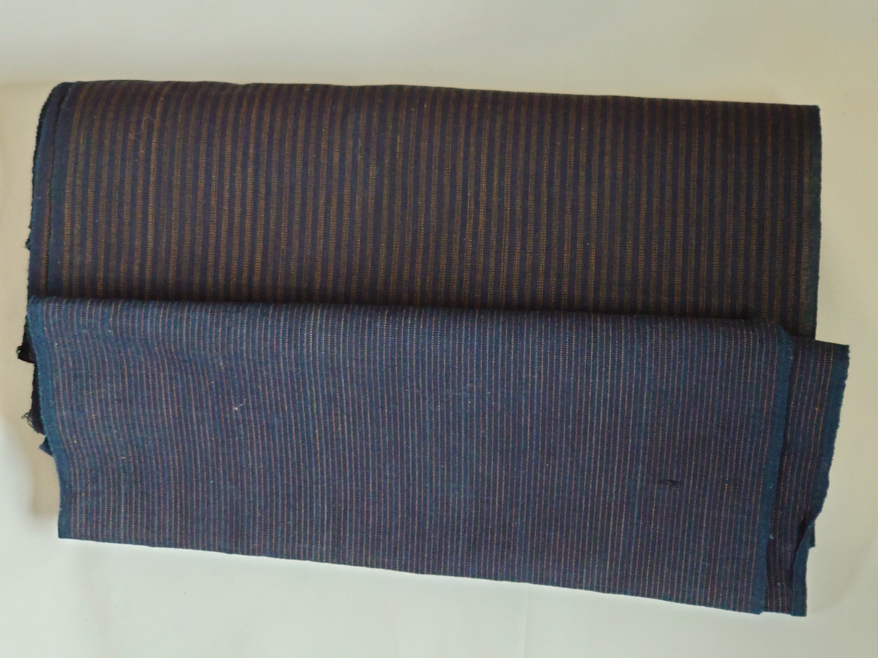 最初は手織りから始まりましたが、明治時代から機械化され、上総木綿で織られた衣服は、通気性が良く、虫が付きにくいため、重宝されていました。明治7年(1875年)には太織8.2万反・縞4.8万反をはじめとして年間14.5万反が生産され最盛期を迎えましたが昭和30年代の初めごろには生産が途絶えてしまいました。藍は防虫・殺菌・保湿・消臭などの効果があることから、日常着や野良着として愛されていたのですが、戦後、生活様式が大幅に変化し、「質実堅牢」な藍染の平織への需要が激減したことは致し方のないことだったのでしょう。