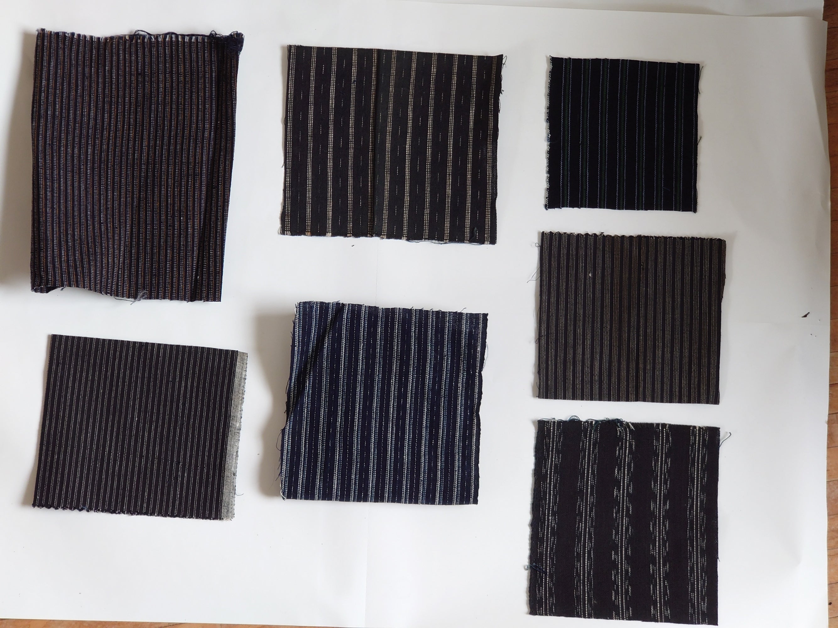 上総木綿の復元は、上総木綿の縞の見本帳に掲載されている縞を参考に行いました。「質実堅牢」が特徴の伝統的上総木綿は、サーファーのメッカと呼ばれている現在の一宮を反映していないように思い、九十九里の海、波、サーフィンをモチーフに明るく躍動感を感じられる縞を基本とした新しい上総木綿をデザインし作成してきました。