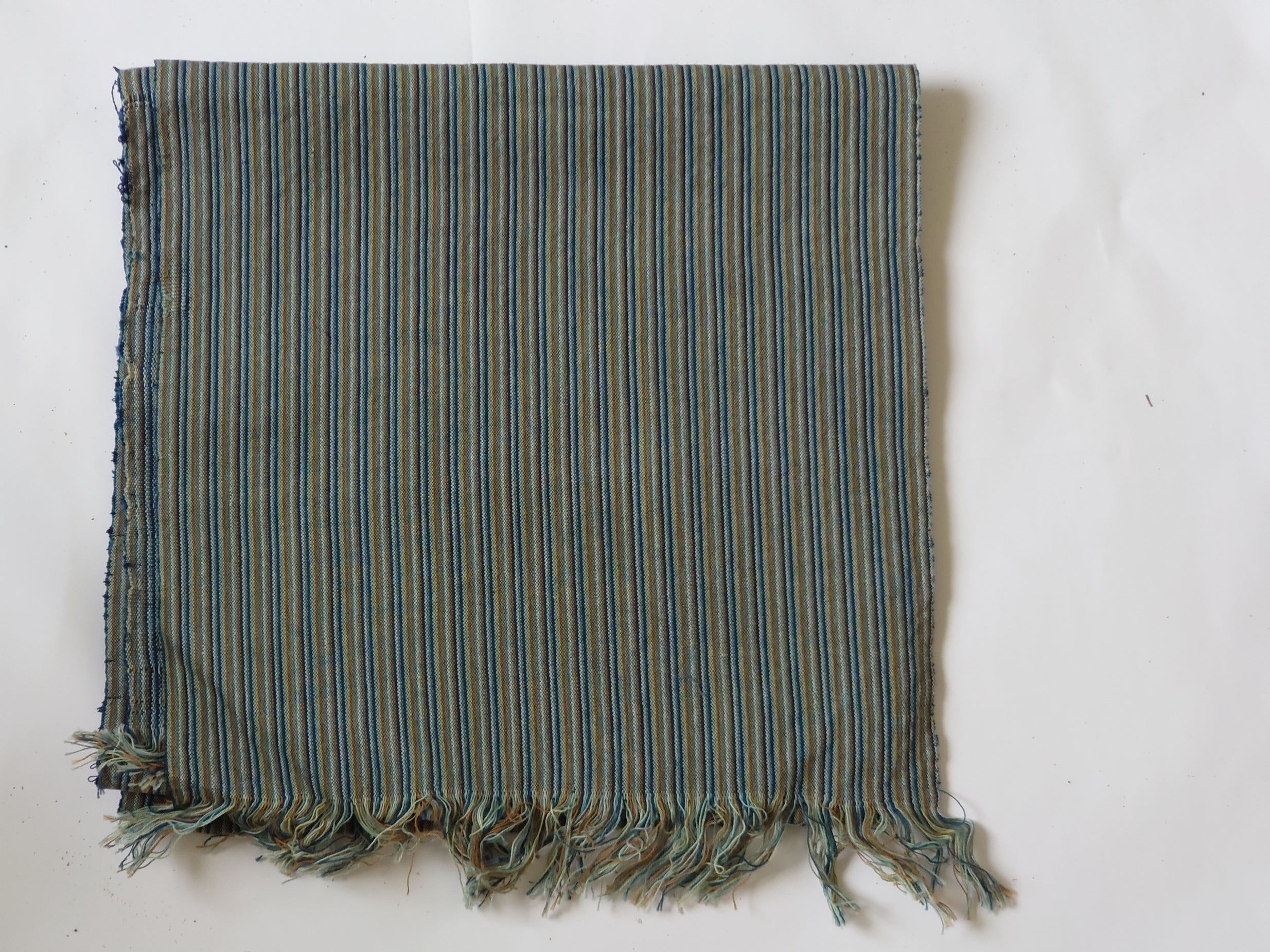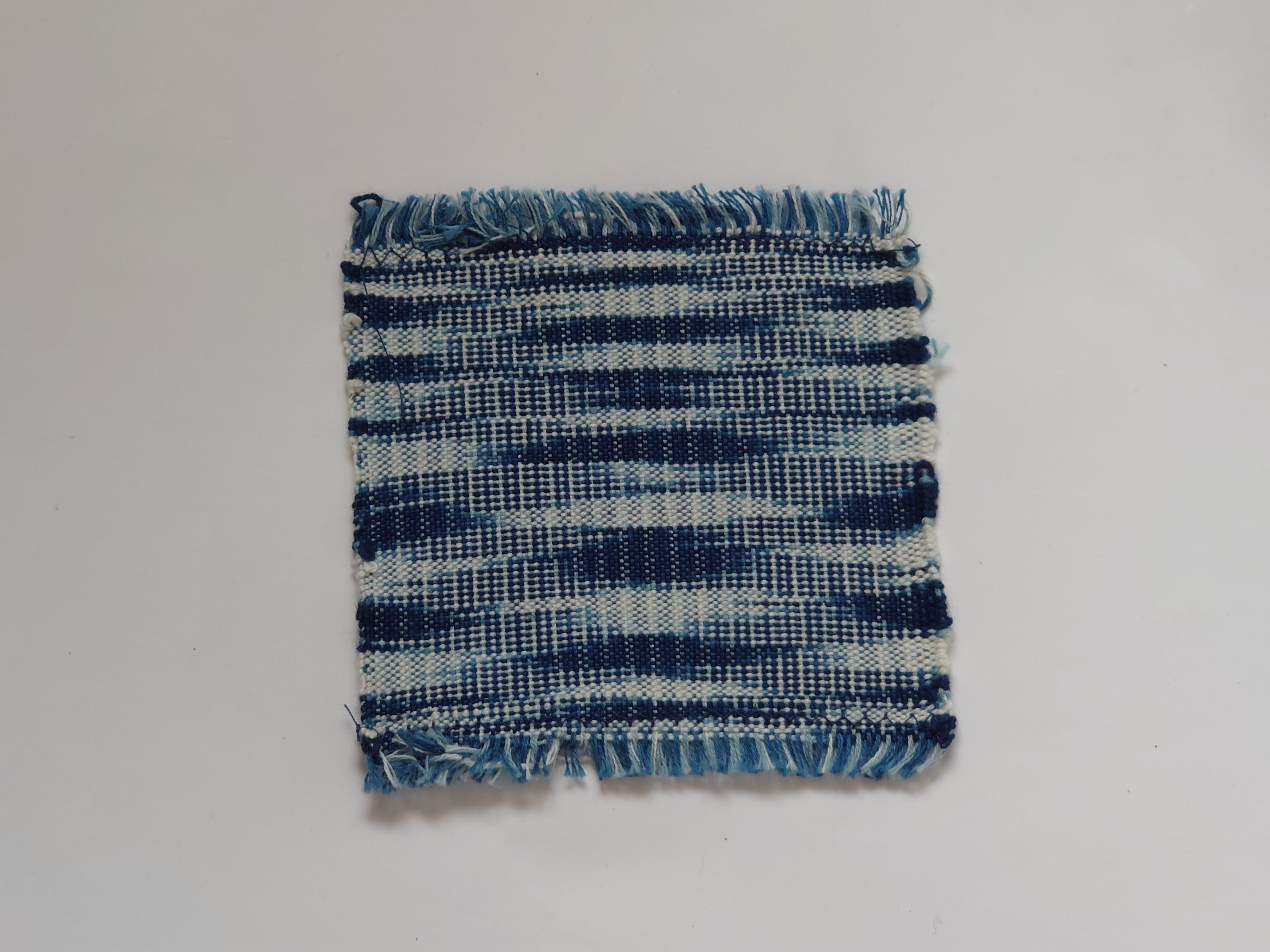 上総木綿の発展には九十九里浜の風土と、地場産業である鰯の地曳網漁が背景にあると考えられ、復元することで外房地域の歴史と文化を周知し、失われつつある手仕事の工程を再現し、新しい製品として生み出すことを目的に上総木綿の復元を行いました(NPO法人さすが一の宮が平成22年~24年度にかけ文化庁の助成金を得て行いました)。藍で糸を染め、すべての工程を手作業で行い上総木綿を復元しました。