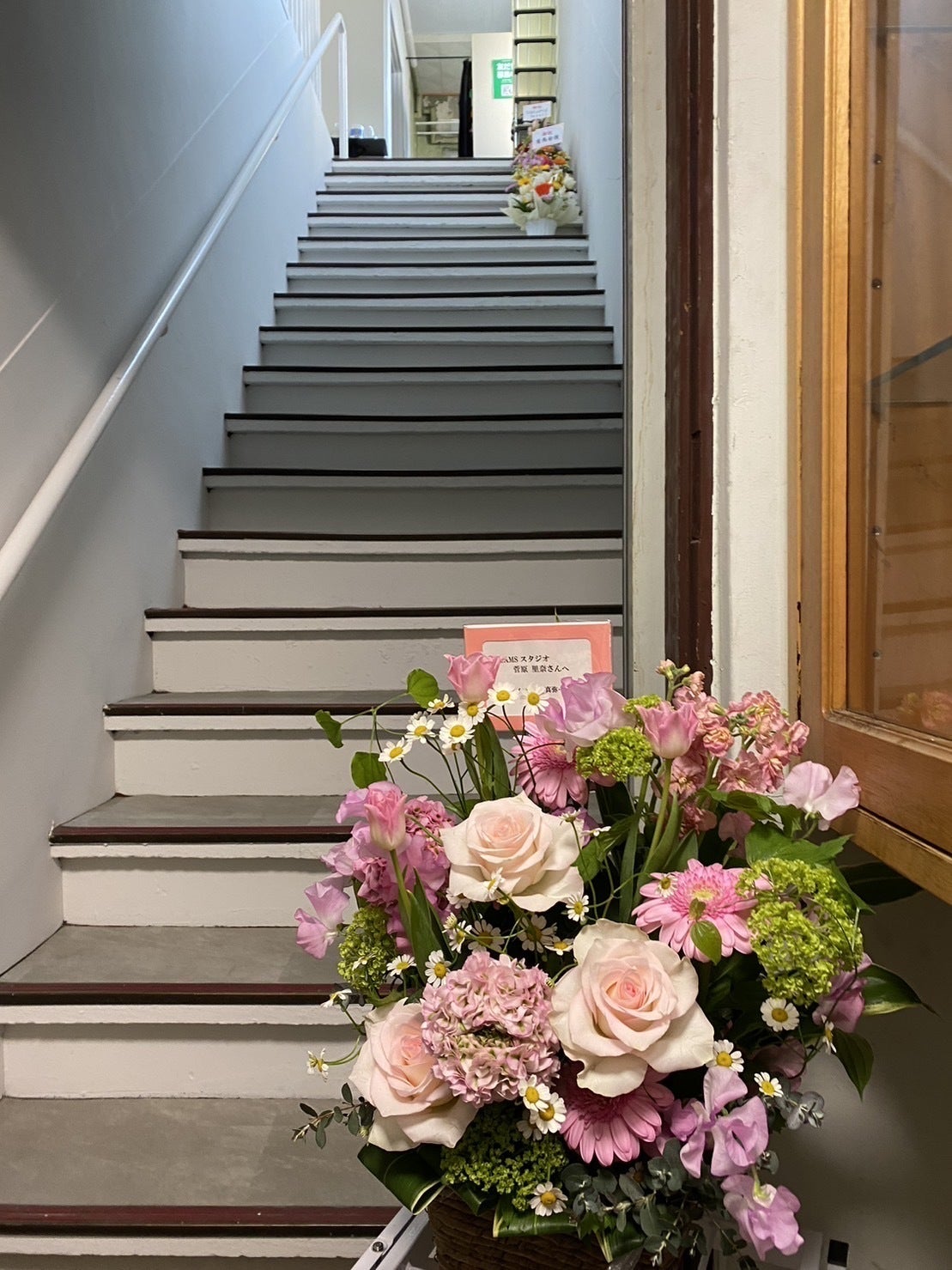 続々とお祝いのスタンド花、アレンジメント、お酒、差し入れが届きました。