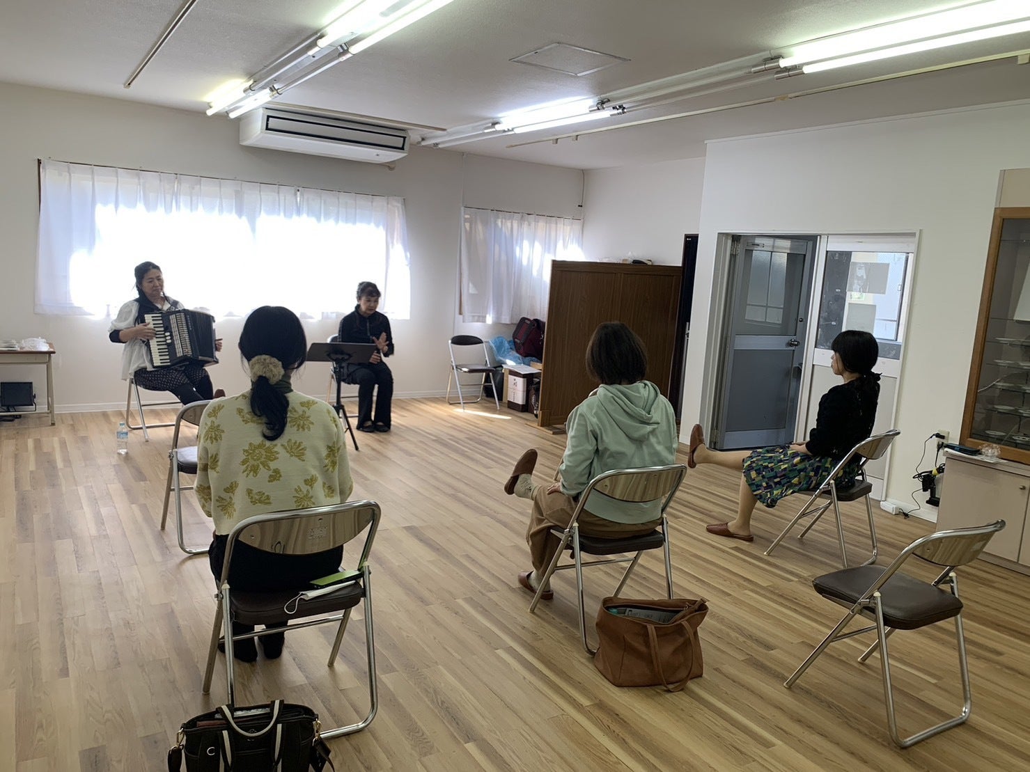 東京での活動と同じく、ララさんのアコーディオン演奏による歌いながらのボイトレです。