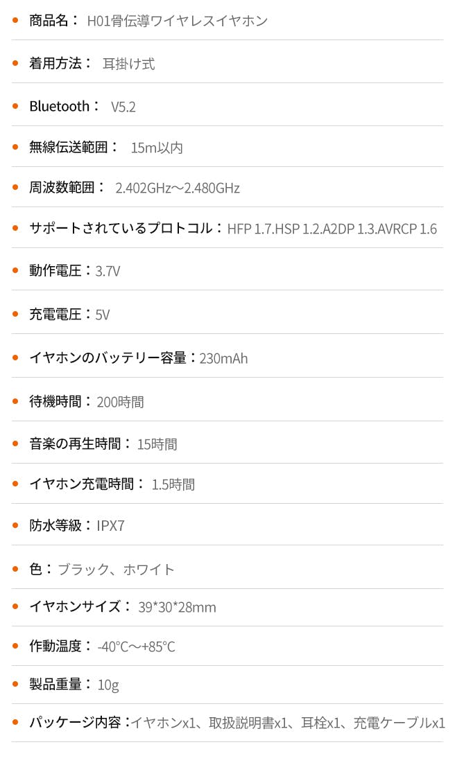 H01の重さはわずか10g、通常の骨伝導イヤホンの約3分の1なので、長時間耳に装着しても重さを感じません。