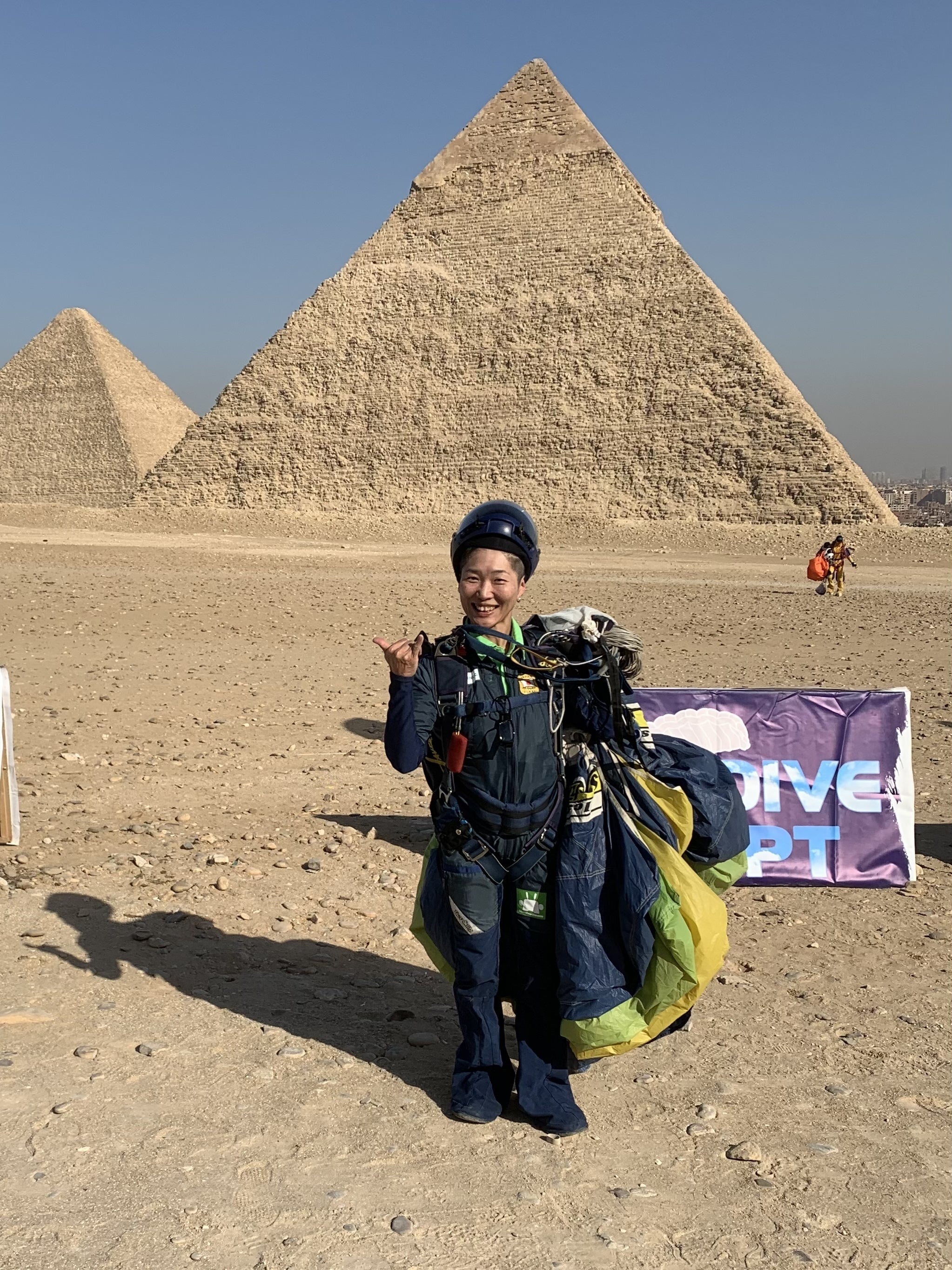昨日、とうとうピラミッド上空を飛びました。上空での映像や写真は、まだ手元にありませんが、パラシュートが開いて、ピラミッドを上から見ながら着地…本当に素晴らしい経験です。今日もこれから飛んできます。ご支援は来年のトレーニングに使わせていただきます。今回、来年2月の屋内施設のトレーニングキャンプの話も聞けたので、参加を前向きに検討しています。皆さま、引き続き、応援よろしくお願いいたします。今日も、気を付けて飛んできます。