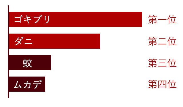 家の中で発生する虫でみんなが苦手で嫌いな虫ランキングの1位は「ゴキブリ」2位は「ダニ」でした。