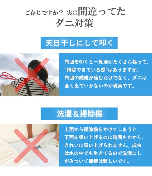 布団を叩くと一見ホコリがたくさん舞って、”掃除できてる感”はありますが、布団の繊維が傷むだけでなく、全く出ていかないのが現実です。
