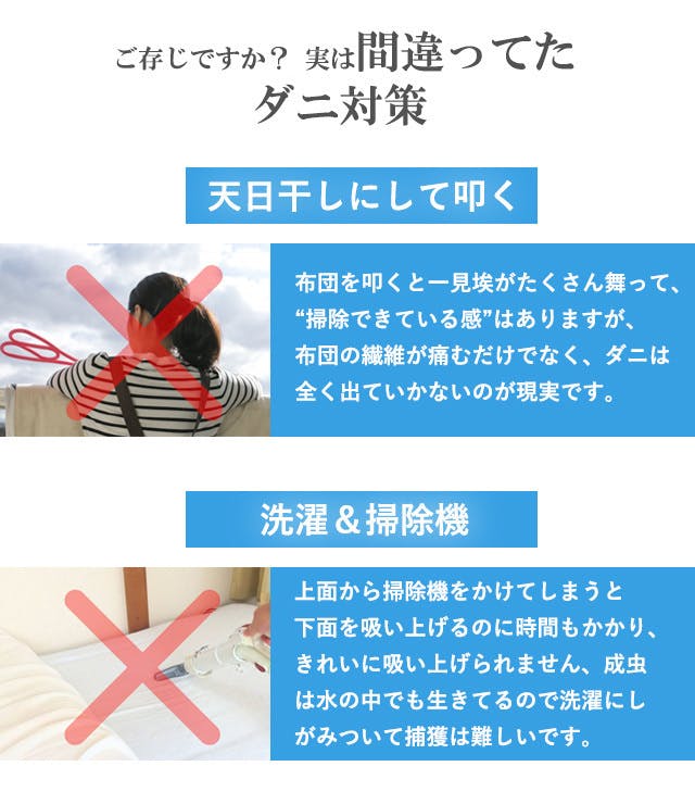 また上面から掃除機をかけてしまうと下面を吸い上げるのに時間もかかり、きれいに吸い上げられません、洗濯をしても成虫は水の中でも生きてるので洗濯にしがみついて捕獲は難しいです。