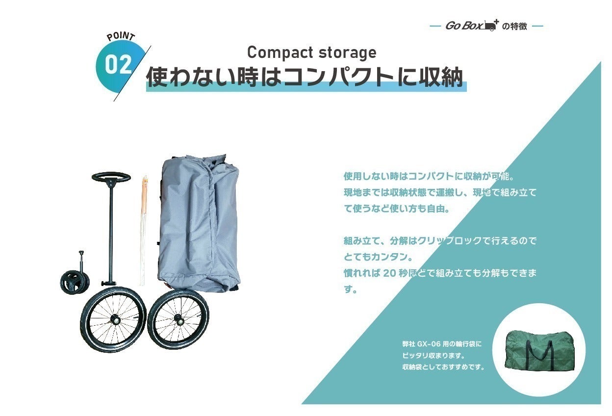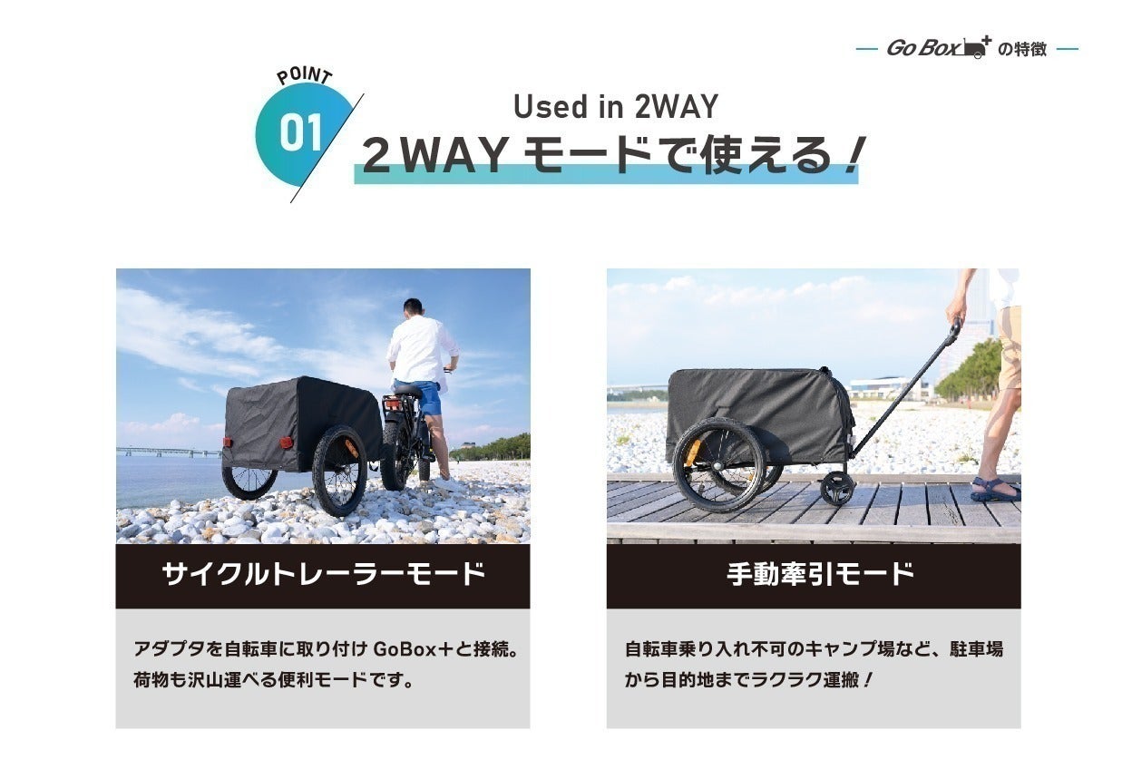 Go Box+は、手で押しても自転車で引いても使える、キャリーワゴン&サイクルトレーラー(リヤカー)です。