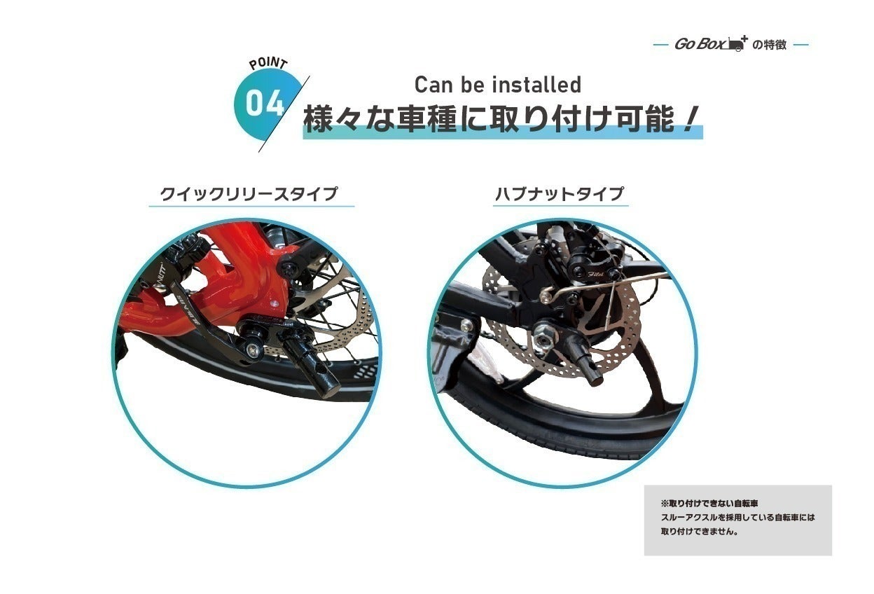 取り付けできる自転車は、後輪の留め具がハブナットタイプの自転車(一般的なママチャリ、電動自転車など)に対応しています。