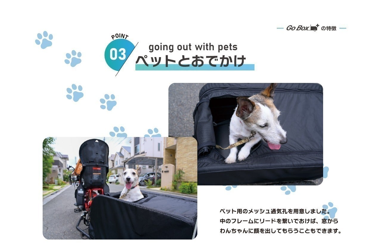 カバーに換気窓が付いているので、ペットをのせてサイクリングも可能です。