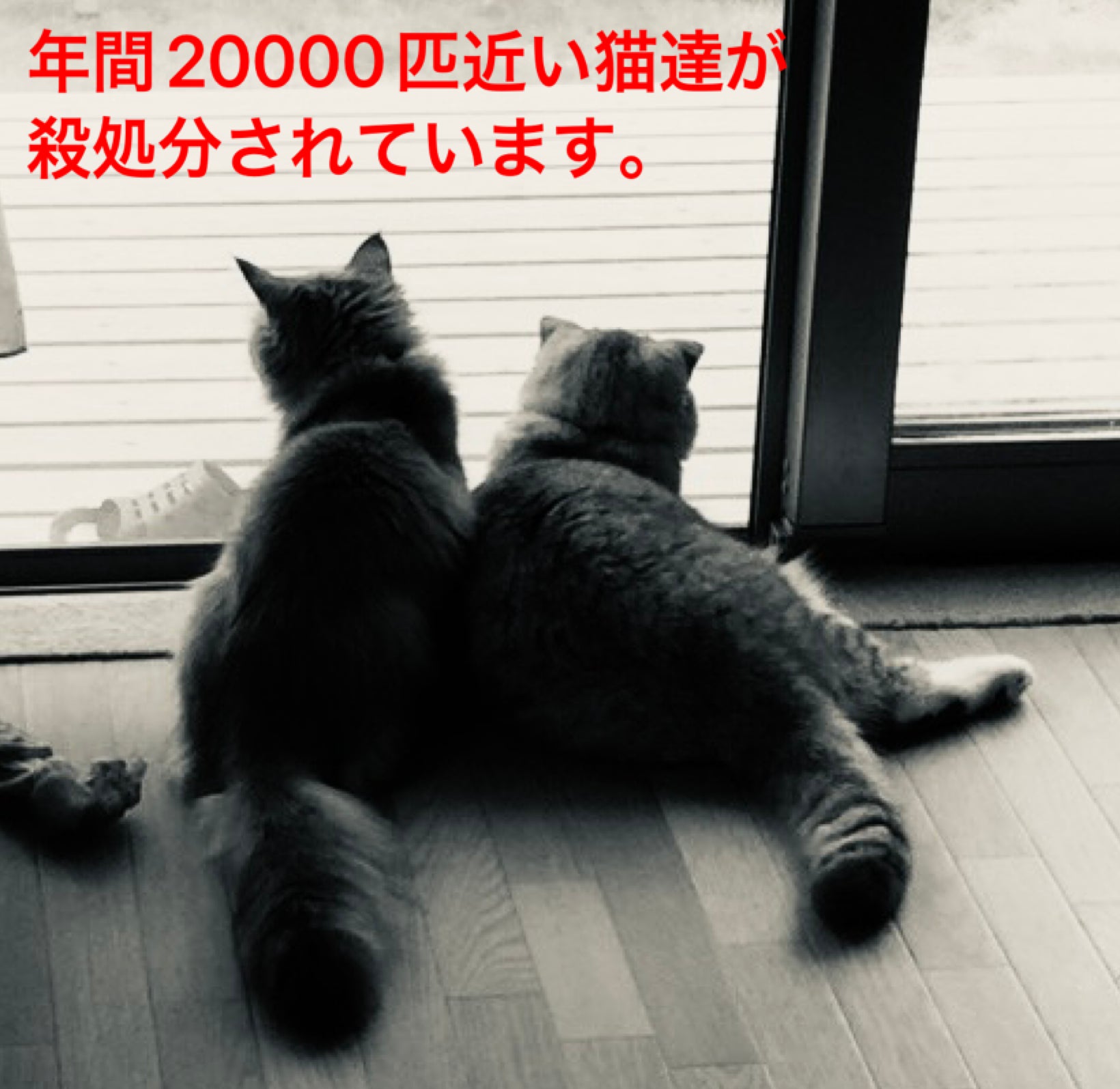 こんなに多くの命が失われていることを皆様はご存知でしたか?一人一人に生きてきた歴史があります。その歴史が今、人が生きていく上で邪魔だから、迷惑になるからと殺されてしまっています。この全てを無くすことは非常に難しいと思いますが、みんなで協力すれば助けられる数です。今、日本には1億2500万人の人間が暮らしています。単純計算で約6500人で一匹の猫を救うだけで日本から殺処分される猫がいなくなる計算になります。