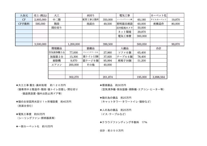 今回の企画で猫達にとって、より良い環境での生活をこちらで整えるために店内内装についてはこのように考えております。