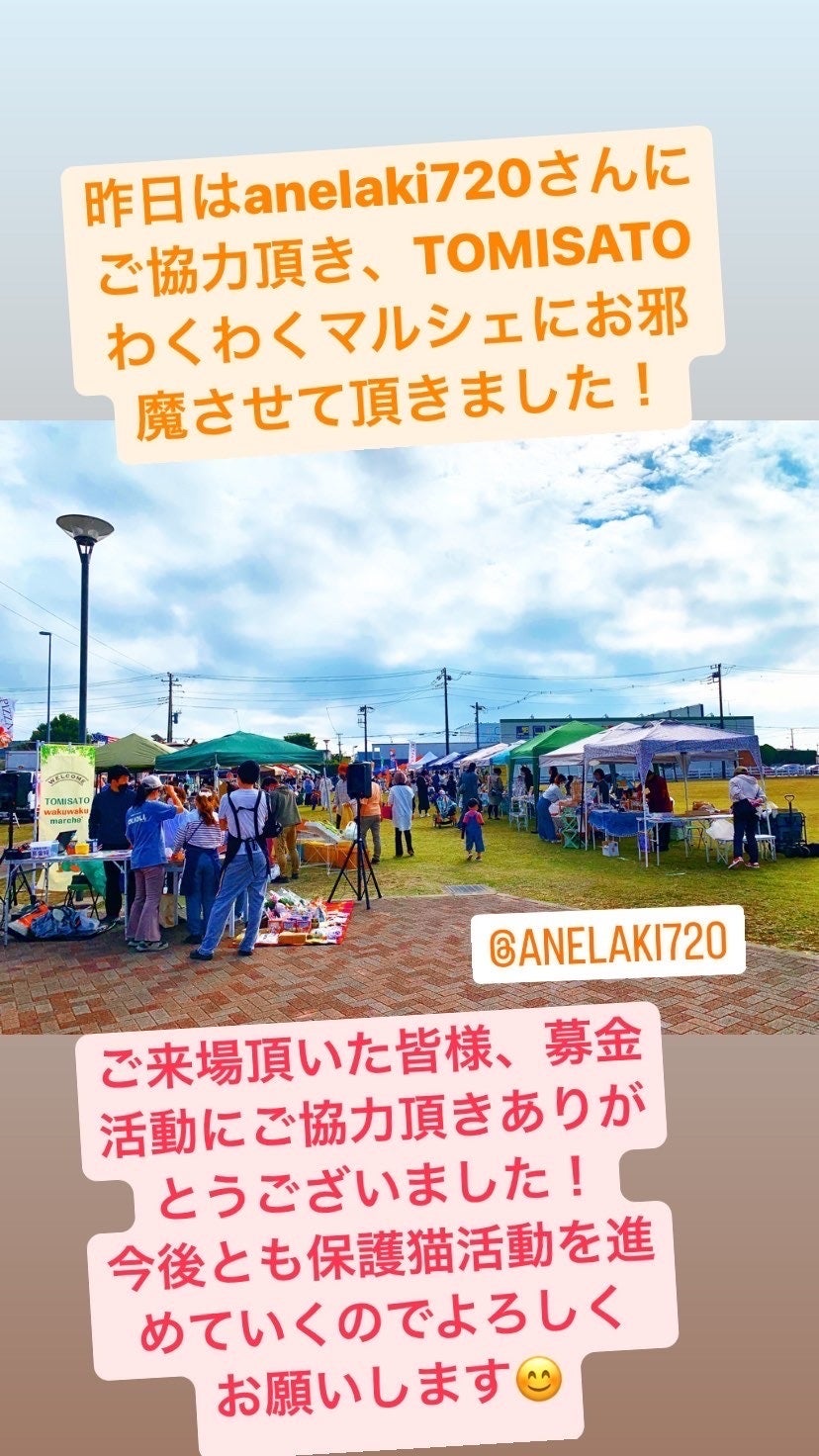 先日富里にて行われたTOMISATOわくわくマルシェで募金活動を行なってきました!多くの方が保護猫活動に興味を持っていただき、応援していただきました!支援してくださった皆様本当にありがとうございます。保護猫活動の中で助けたくても助け切れて命がまだまだたくさんあること、その命を守るために保護猫活動が大事であること、私たち一人ひとりが少し頑張るだけで多くの命を救うことができることを伝えられたらと思っています。今後ともこういった活動をしてより多くの方に保護猫シェルターの必要性、不幸な猫を一匹でも減らせるようにと今後とも活動を進めていきます。