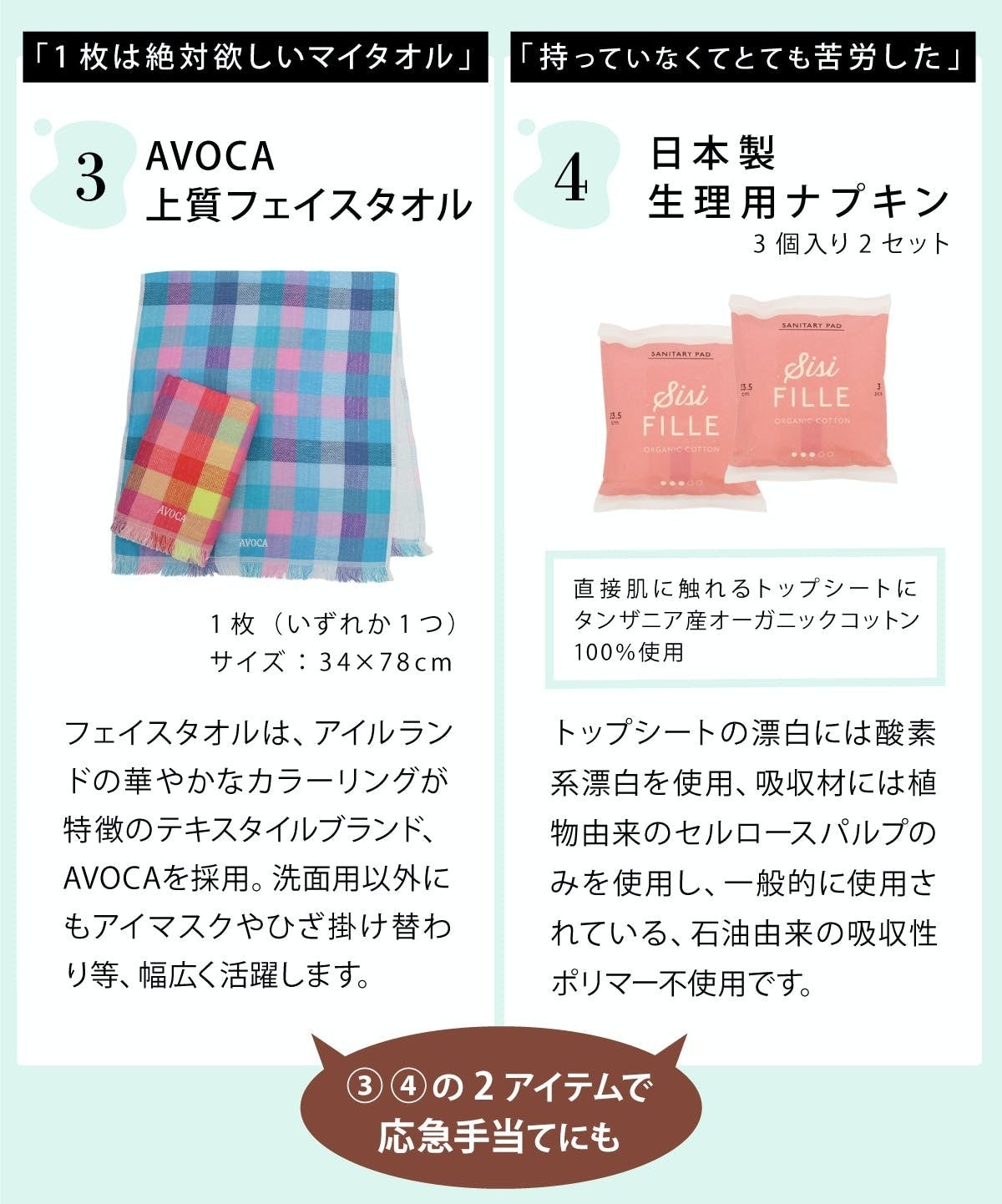 4. 生理用ナプキン3個入り×2