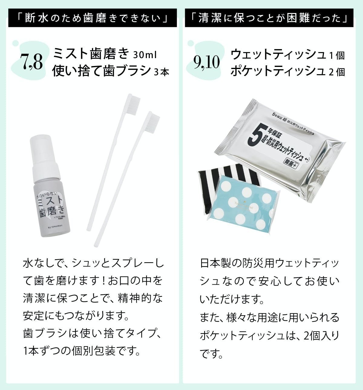 9. 防災用ウェットティッシュ×1