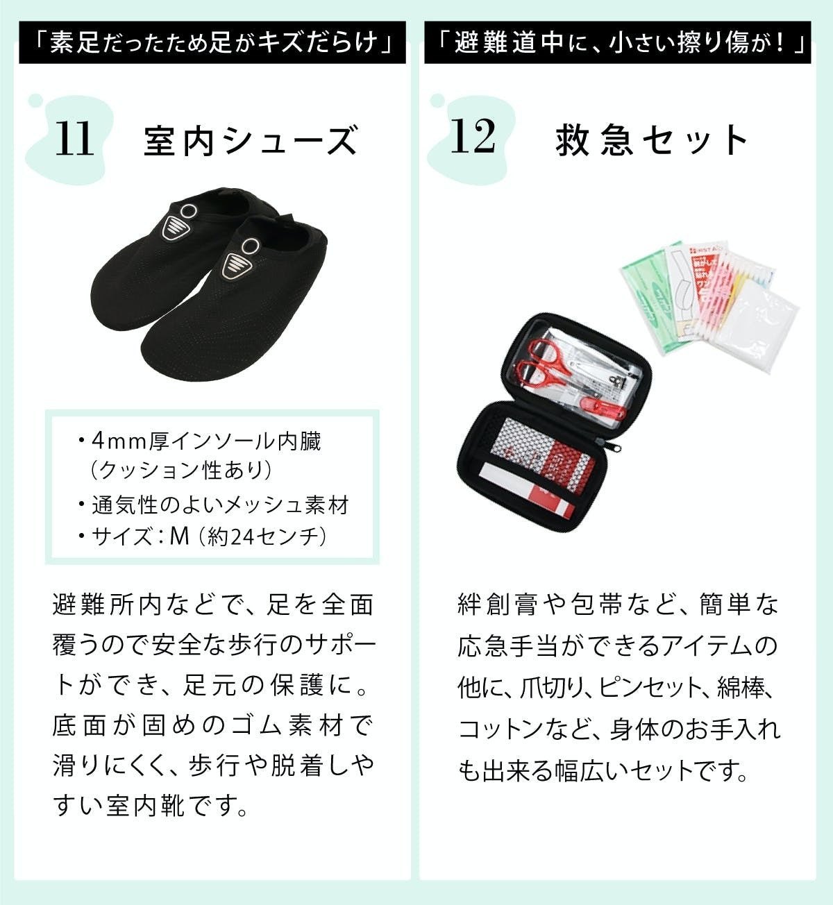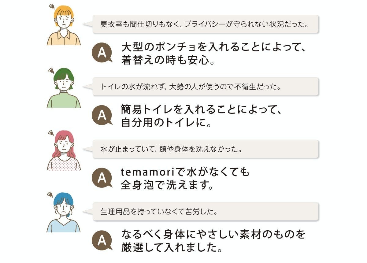 避難経験者の声を参考に、実用的かつ、よりコンパクトでキュートなアイテムを集めました。