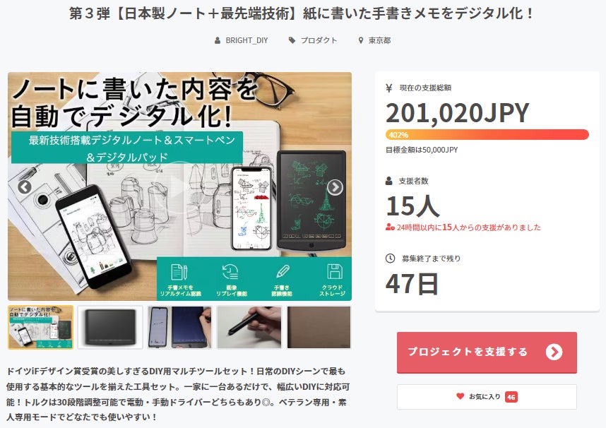 この度は「第3弾【日本製ノート+最先端技術】紙に書いた手書きメモをデジタル化!」に支援して頂き、ありがとうございます!