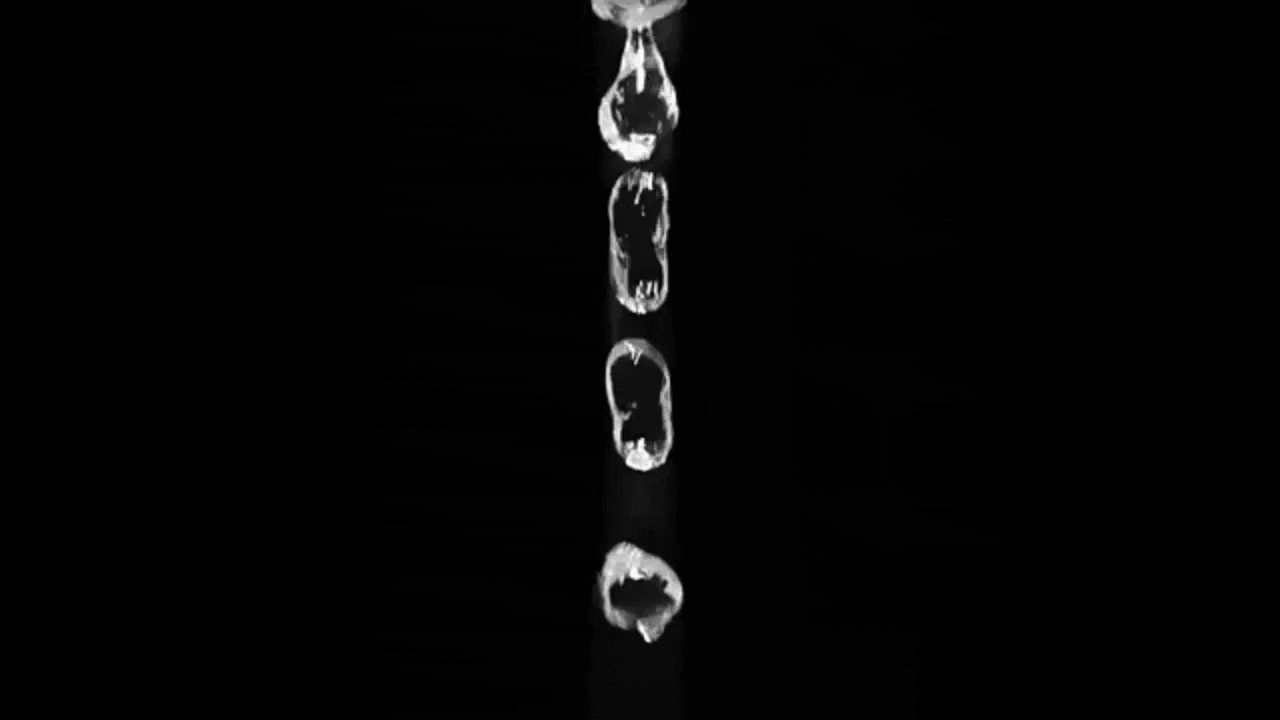 カメラを通して見るストロボ効果と違い、肉眼でも水滴が浮かんでいるように見えるのが「Gravity Drop」の特徴です。