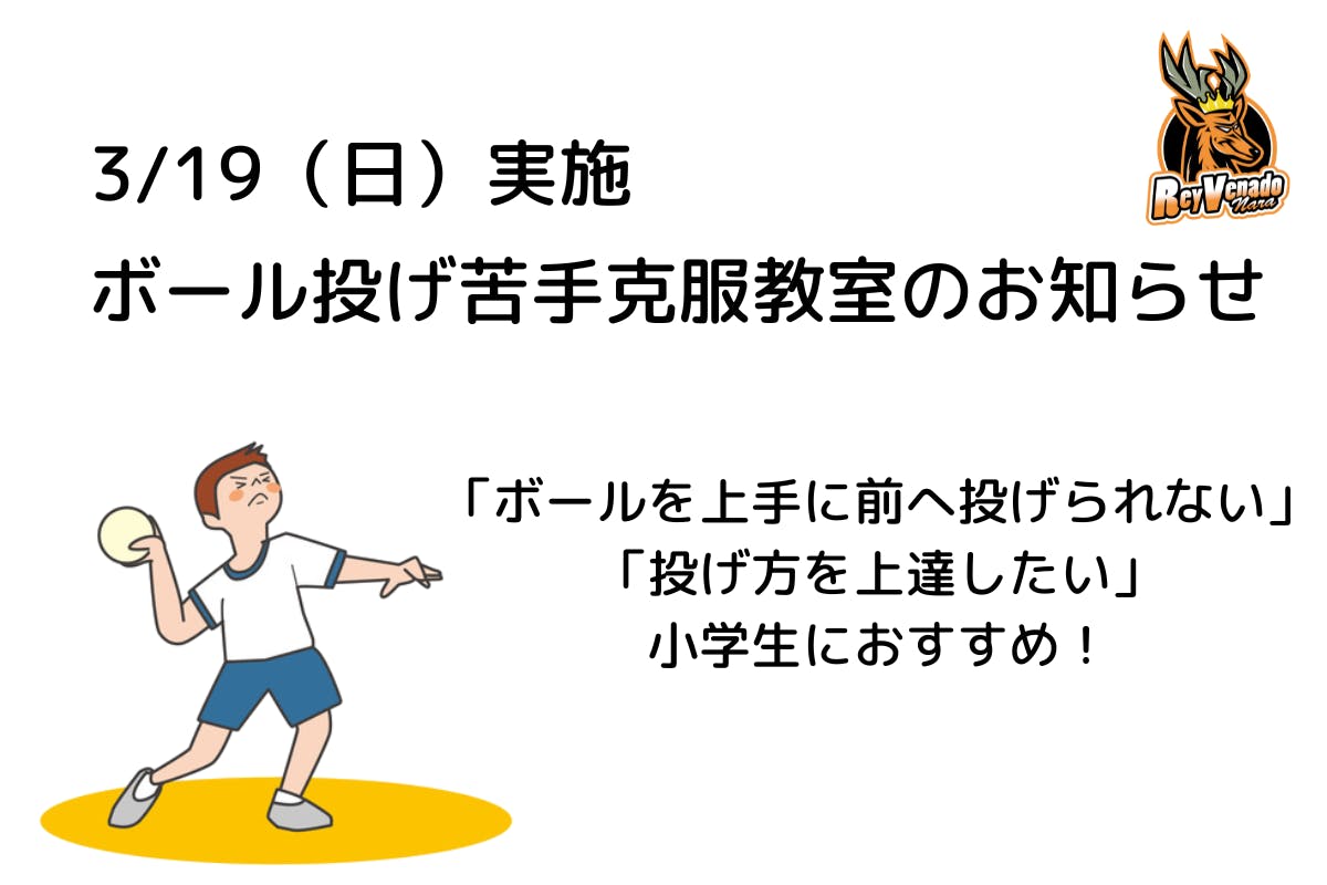 3/19(日)開催予定の、ボール投げ苦手克服教室のお知らせです。