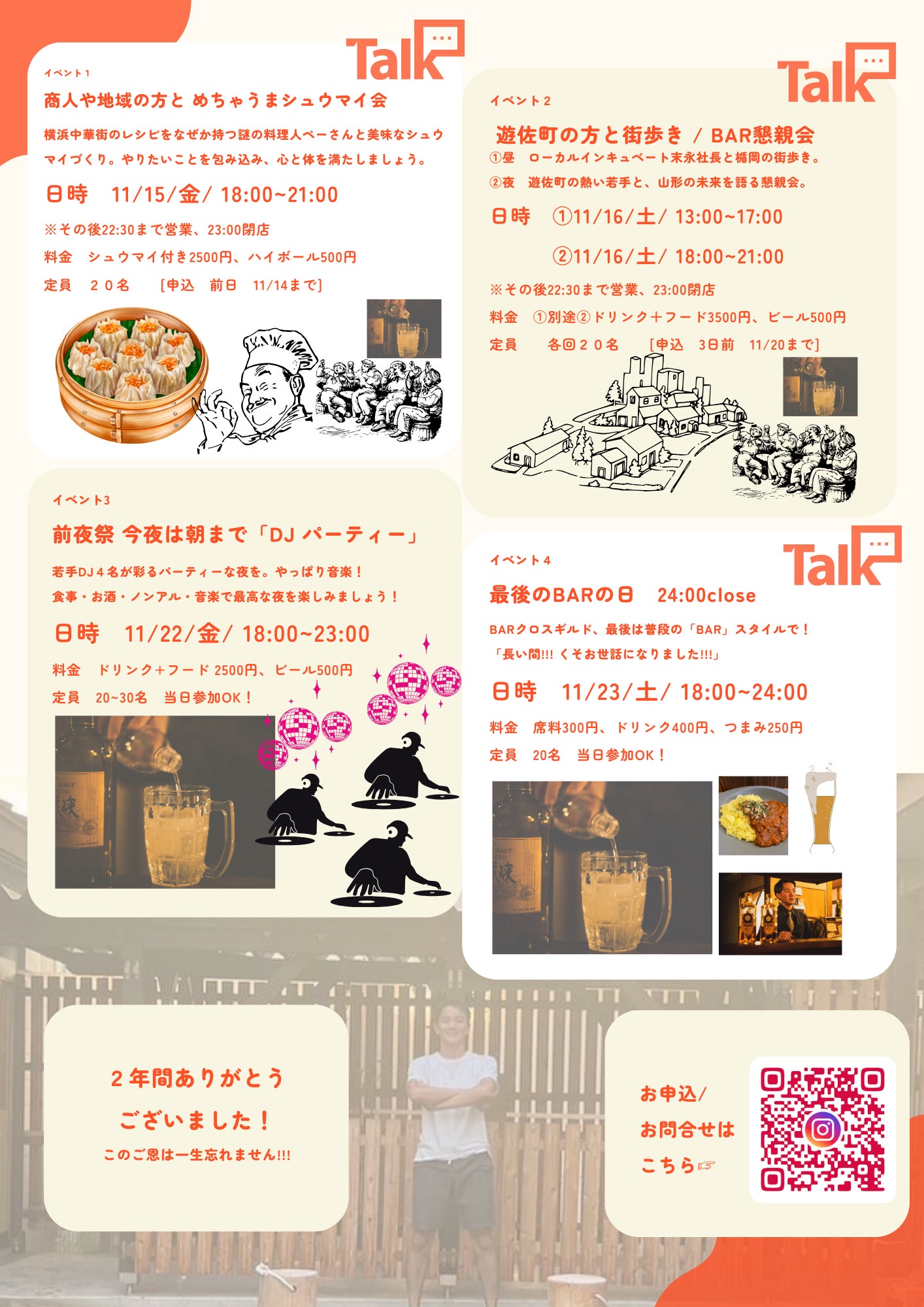 11月16日(土)13:00~ 遊佐町の方と街歩き / 18:00~BAR懇親会