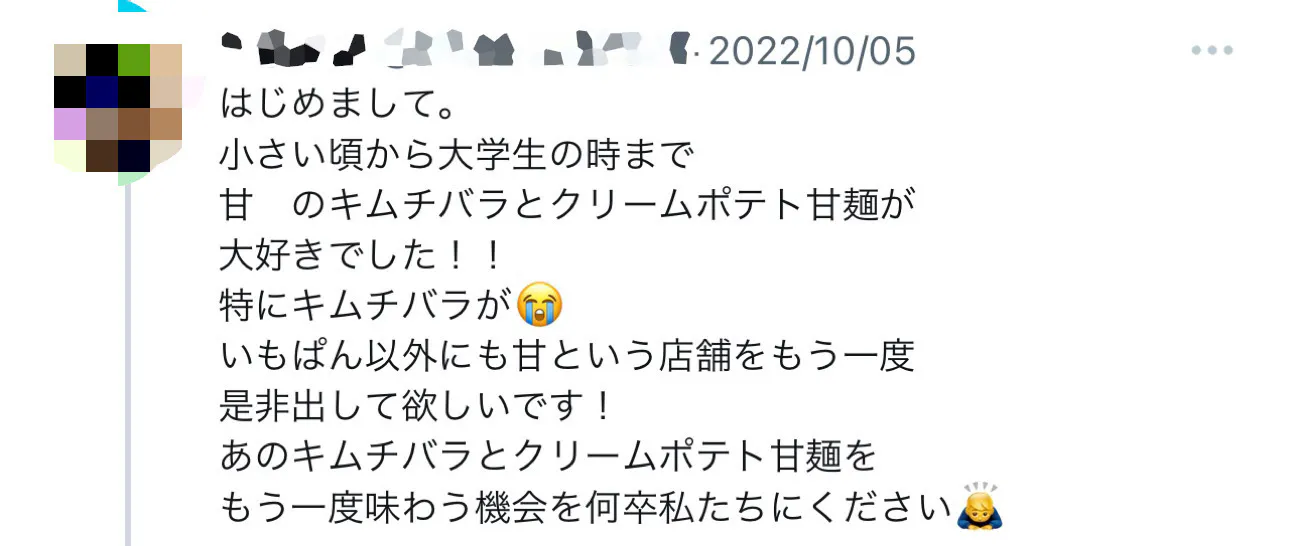 現在私は別の仕事をしていますが、お店が閉店して7年経った今でも「思い出の味をもう一度食べたいです」や「どこかで買えませんか?販売してほしいです」との声をいただいています。