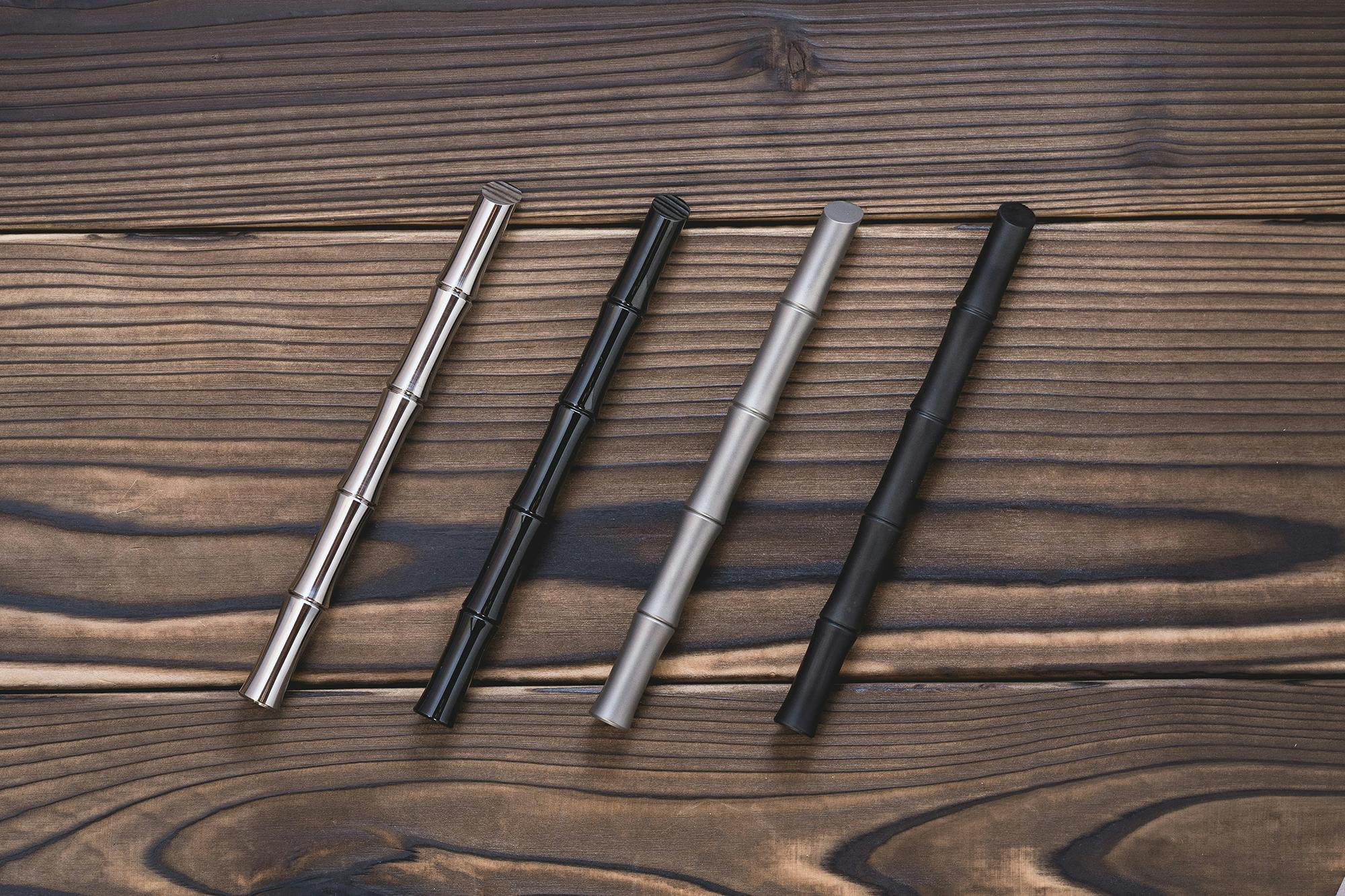 チタンは、光沢のあるナチュラル・鏡面仕上げ(写真左から2本)と、マット(写真右から2本)の2種類をご用意しました。
