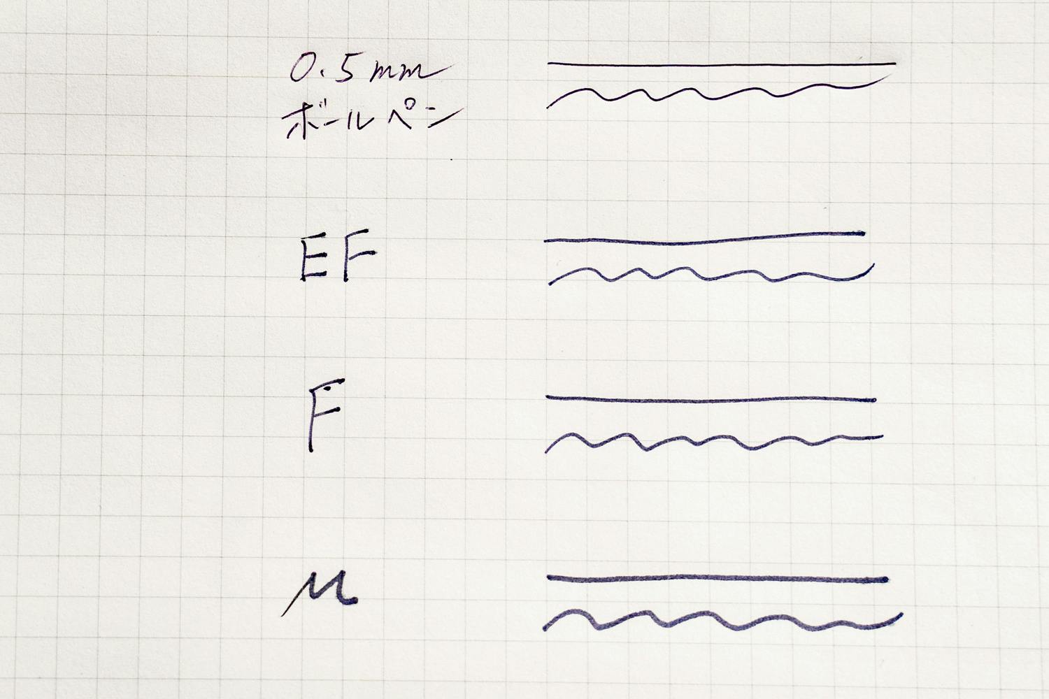 手紙などで大きめな字を書く際には、万年筆らしいインクの濃淡を楽しむことのできるMがおすすめです。