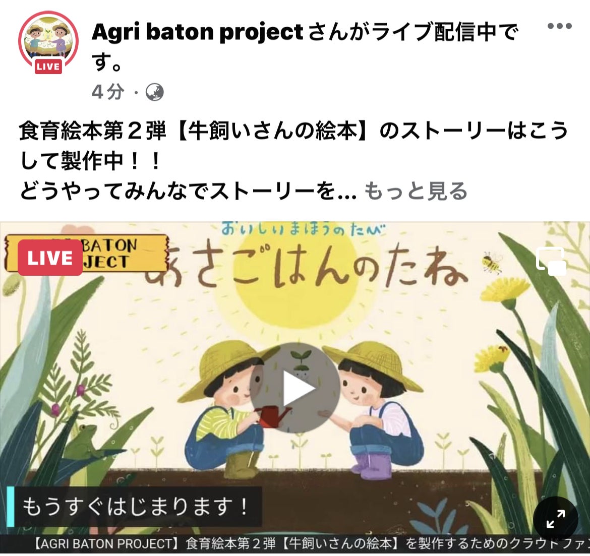 これから本格的なよるごはん編の絵本の製作を進めていくとともに、前作、あさごはんのたねの絵本の読み聞かせイベント・食育活動、農業のマルシェ出店、SNSや活動報告で製作裏の話や、全国の農業女子の想いを語る【AGRI BATONライブ配信】をお知らせしていきます!どうぞよろしくお願いいたします。