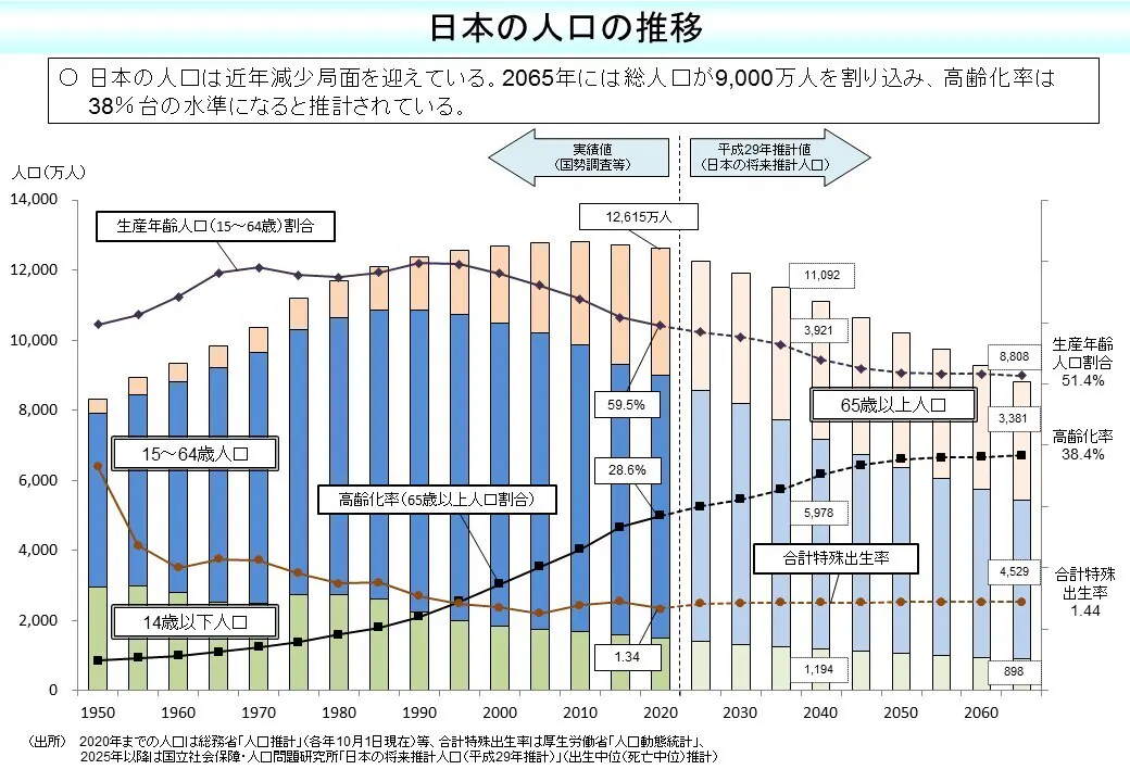そこの人材不足に拍車をかけるように、今後の日本の人口減少の予測数値が以下のように出てきています。
