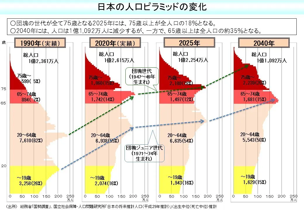 2025年には日本の人口の約30%が65歳以上の高齢者、2040年には日本の人口の約35%が65歳以上の高齢者となり、労働人口減少・少子高齢化の社会課題が、医療・福祉業界でも例外なく深刻な問題となります。