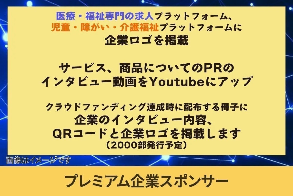 求人プラットフォームは、「医療・福祉業界の事業者・求職者の双方のために構築する!!」との思いから、日本の未来のために売上を還元し、次の世代に今を生きている私たちが残し・紡ぐ仕組みづくりが大切だと感じ、クラウドファンディングプロジェクトを立ち上げました。