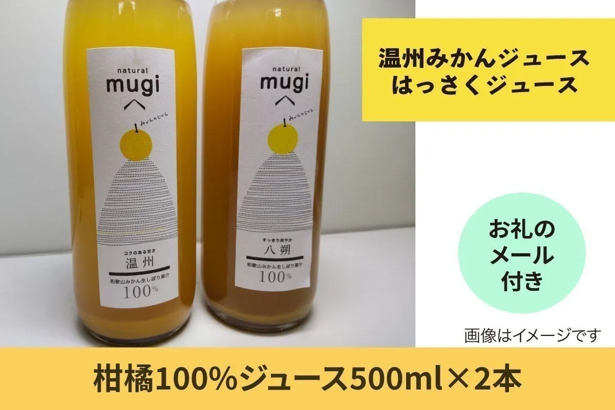 障がい福祉事業所で制作された柑橘100%ジュース2本をお届けします。 和歌山県産の温州みかんとはっさくの果汁を使ったジュースを味わいください。 Busifro-Search 株式会社の代表取締役 小笹勝弘から熱いお礼のメール付き。
