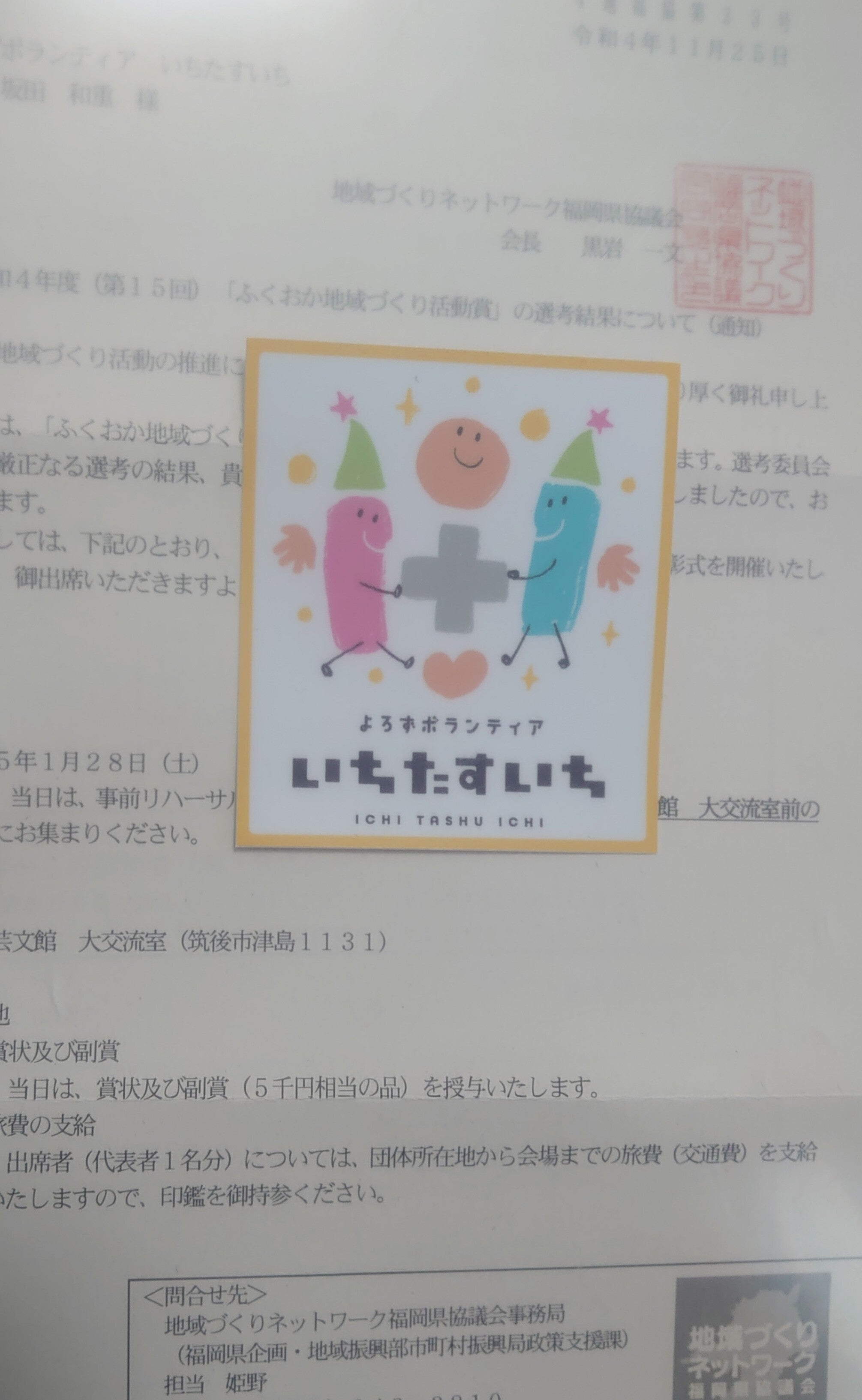 2022/12/04 12:36皆様にご報告かあります。この度は非常に多くのご支援がありまして無事に本プロジェクトが終了致しました。ありがとう御座いました。そして無事に目標金額達成致しまして大変感激しております。また本プロジェクトには反映できてませんが驚くほどの募金も頂き嬉しい限りです。ありがとう御座いました。またプロジェクト達成と喜んでいたら同時期に県から、「ふくおかまちづくり活動賞」なるものを頂きました。地道な活動が少し認められたのかなと思ってます。さあ、今月から当団体の活動が本格的に始動します。応援お願い致します。 もっと見るプロジェクトもラストスパートが近づいてきました~