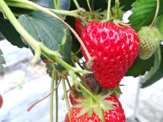 ビニールハウスの中に何列にも渡って、いちごがありました。