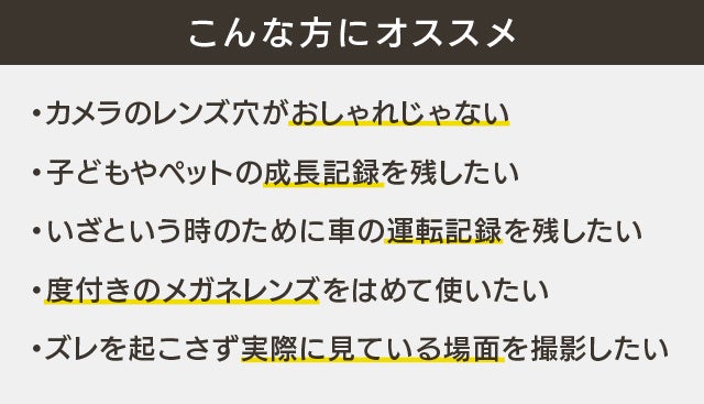 カメラのレンズ穴がはっきり見えているメガネは、デザイン的に少し気になる人もいるかもしれません。
