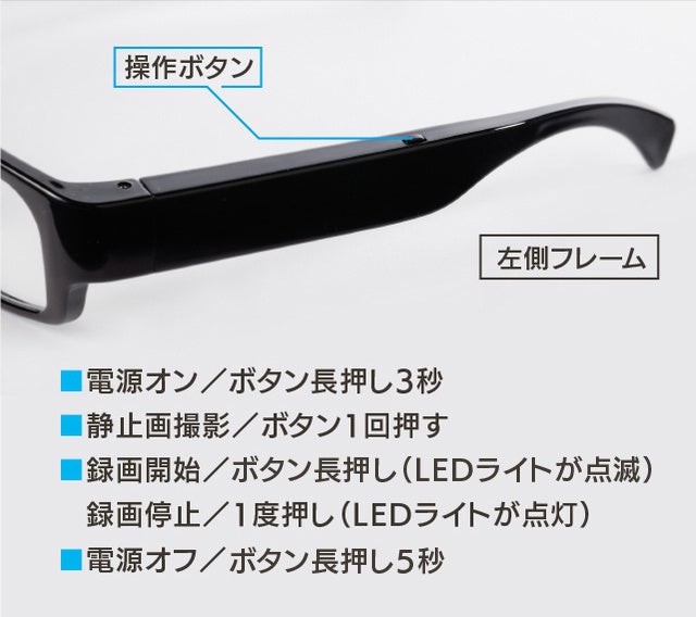 このカメラ内蔵メガネならボタンをワンタッチするだけで、手ぶらの状態で録画しながら大切な瞬間を存分に楽しめます。