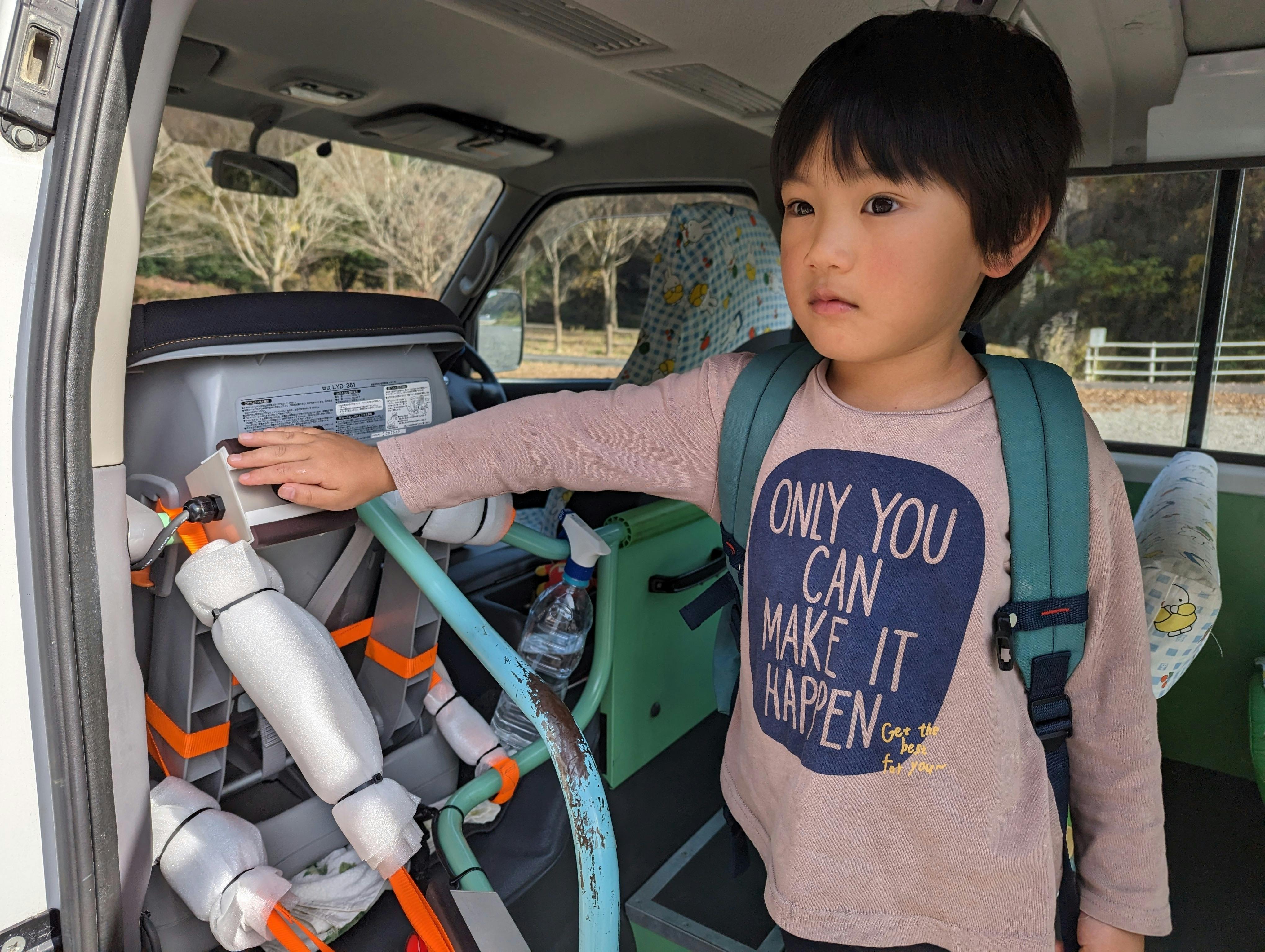 パターンを設計する為に、幼稚園に協力いただき、バスで実証実験を行っています。(2022/9末-現在継続中)