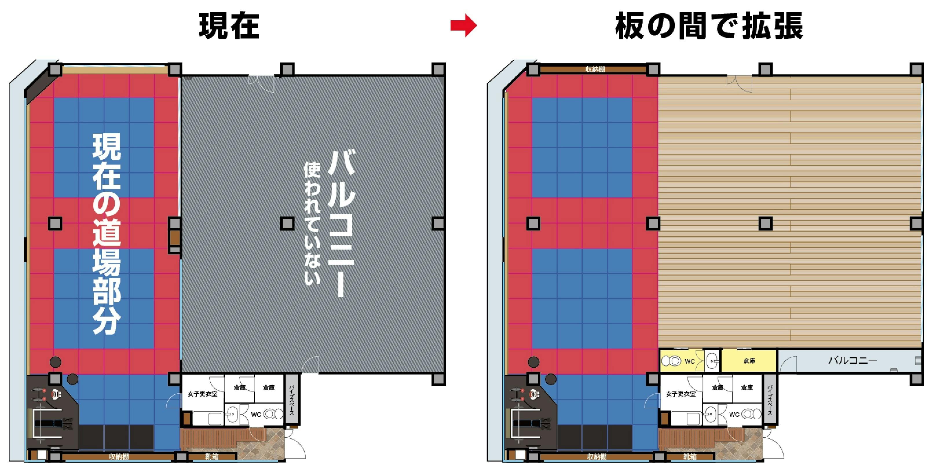 現在、スポンサー様1社と建物のオーナー様の協力もあり、道場拡張のための契約費用、初期資金はなんとか準備できそうです。※補助金の申請も同時進行で相談中です。しかしながら拡張はできても、その他下記のような設備の資金が現在目処が立たず足りない状況です。そこでお力添えをいただきたいと考えております。