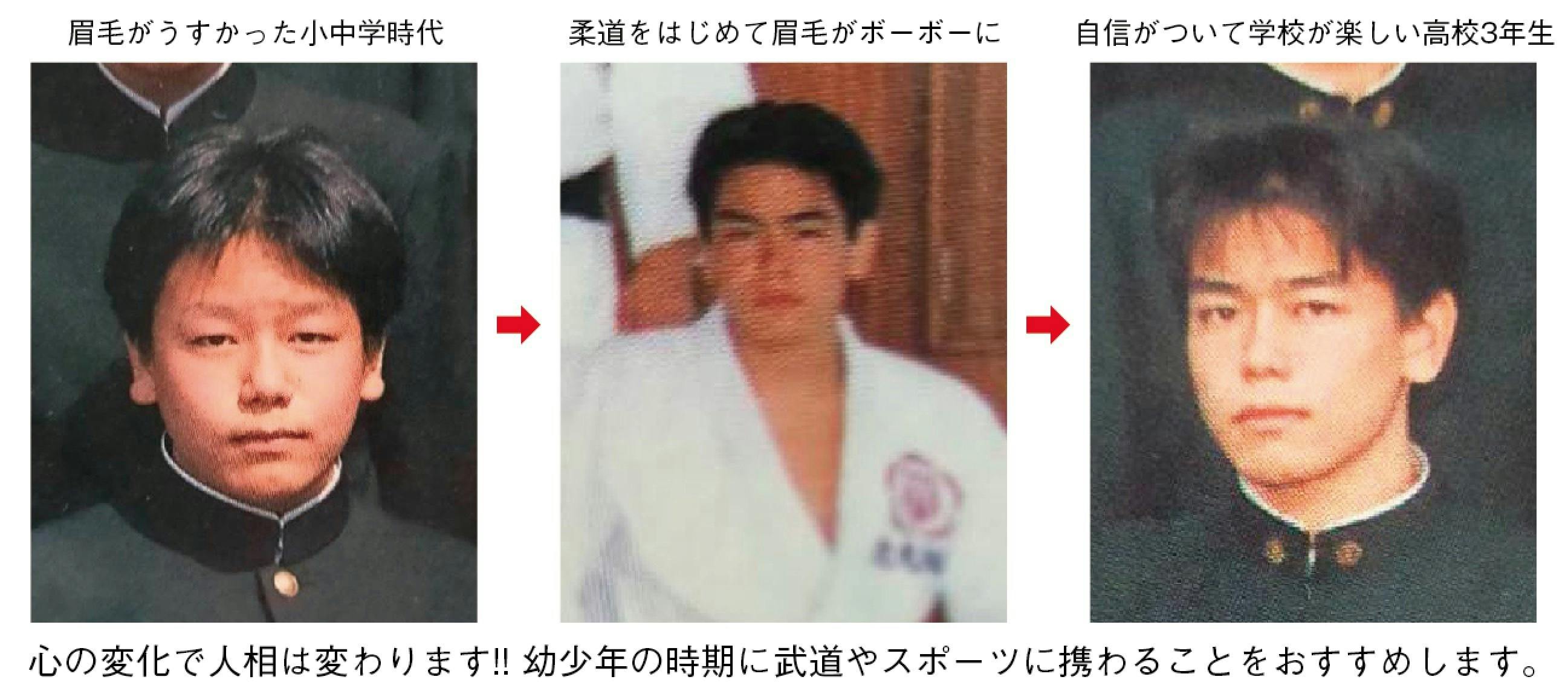 さらに面白いことに、“顔は心と共に変化する”とうことも実感しました!今まで眉毛が薄くてイジメられることもあったくらいの私の眉毛が、柔道はじめて1年経つ頃、自信がついてホルモンバランスが変わったのか「お前整形したやろ!」と言われるほど眉毛がボーボーで目つきも変わり、口元も引き締まった感じでした。