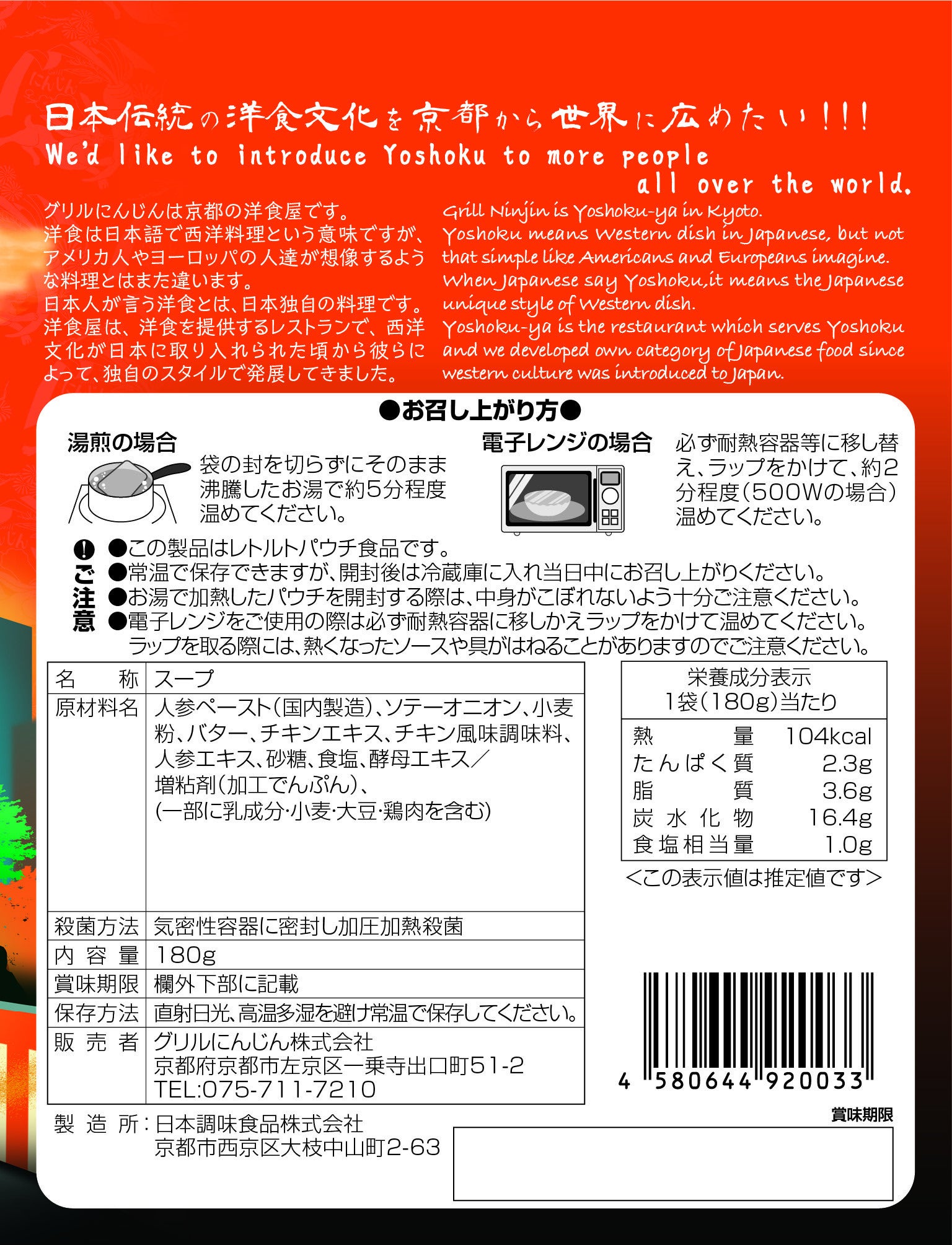 お店で食べるような満足感や、洋食ならではの暖かみを感じていただけると思います。お子様からお年寄りまで、みなさんに食べていただきたいポタージュスープです!