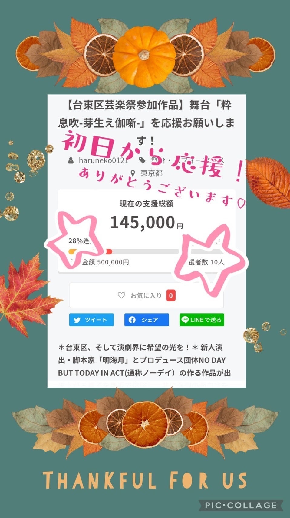 クラウドファンディング、お申し込み締切まで、残り12日 となりました!現在、40名様以上の方からご支援頂き、クラファン上の目標金額である50万円を達成しております!!本当に、有難いことです。私にとって、今回は何から何まで挑戦の連続でした。台東区の芸楽祭に、まだプロットも出来上がっていない状態&キャストも冨田浩児さん、はらみかさんのお2人しかほぼ決まっていない状態での参加表明。そして、今回のクラウドファンディングへの初挑戦。何より明海月として2作目の脚本執筆、演出。1作目の「さよなら、かあさん。」という作品は、私の親友から話を聞き、その実話を元に描きました。『誰かのために』というゴールのようなものが明確で、また、私の中で言葉に、形にしたい事がたくさんあったからこそ、出来上がった作品で。その中で主役を除き大いに力を貸してくださったのが、とみーさん、はらみかさんでした。(もちろん、全員からお借りしてましたが、特に私自身の心の支えとなったり、技術面でもたくさん支えてくださったお2人でした。)だからこそ、また一緒に作品を作りたいと。さらには、お二人のあまり見た事のない姿も、板の上に乗せて欲しいと。私が脚本としても演出としても大事にしているのが、「あなたが、あなただからこそ輝く、心の化学反応」を生み出すことです。それは、キャスト同士だけでなく、スタッフ間、そして何より、お客様の心にも、です。…ここまで書いてきてちょっと思い出した…はらみかさんにクラファンの文章固くね?って言われてたんだった…笑熱くなると、こうなっちゃいます!!笑もう少しお付き合い下さいませませ。やっぱりね、人と人とを、ありのままのその人を大事に、大切に、共に作品を作っていきたいのですよ、あたしゃ。←色んな作品を、きっと私は今後も紡いでいくと思います。でも毎回、自分にとって「初めて」な感覚で書くのだろうなと。そしてその時その時の私自身の感覚もきっと違うから、「明海月節??」を効かせながらも、新しい物が出来ていくのかなと思います。2作目、とはいいつつ、ほんともう、初体験みたいな感覚が書きながら何度もあって。何回、作品を書いても、きっと描くテーマというか、もちろん内容は変わるけど、本当の奥底での何かは変わらないのかなぁと思ったりなんだり。やはり、人間の心を、生き方を、描きたい。今回、御伽噺というあるようでないような、物語を描いています。衣装も、奥村そらさんと共に、和洋ミックスで、実際こんな時代はないけど心の在り方はどんな世界観でも変わらないと思うのです。それを、今作で表現、することに挑戦してます。凝り固まった「正解」から脱却して、あえて「不完全さ」を魅せていきたい。どっぷりと、この世界観に浸っていただけますように。そして、来年、また新たな、麗らかな春が、皆様の心に芽生えますように。祈り。私にとって今回、祈りなのかもしれません。何を?と言われたら…心の平穏とか?己らしく生きることとか?色んなことをそれぞれ、違った痛みを伴って一人一人抱えている中で、ほんの些細な光が降り注いで欲しいな、という、祈りです。きっとどんな作品を描いても、脚本家明海月としての「祈り」は色を変え形を変え、物語にあるのだろうと思います。ずっと祈りながら書いていたからか…追い込まれて「まずは描ききってやるうううう」と思っていたからか、初稿をようやく書き上げたこの日、写真を撮りながら、本当に涙が出てきました。笑スタバの中心で、愛を叫びそうになりました(何言ってんだろこの人)まだ始まったばかりだし、まだまだこれからだし、ここで泣いてて(感動&達成感故のね)どうすんねん!!!と、天井を仰ぎながら静止してました。はい、狂ってますね。←すでに全役に愛てんこ盛りですが、それだとどうにもこうにも長いし、みんな目立ちすぎてテーマ性薄れちゃうので書き直しますが…もうすでに泣きそうです←初稿データ買ってくださった方は、これが元々描きたかった役の取扱説明書だと思ってください←さぁ、ここからは祈りを込めて、愛の質を深めていく作業。はよ完成させねば。やりますよ、えぇ、ええ、やりますとも!!!稽古場でもたぶん、こんな感じで話してると思います。キャストに言われたのは、「人殺しそうな目してる」「首落ちてる」です。おっと、印象最悪なことしか言われてないじゃァないか。こちら証拠写真です。(自ら晒していくスタイル)私が聞くことはあっても自分自身に問いかける日が来るとは…「ねぇ、今、どういう感情?」稽古を見ている時、真剣になりすぎてよく目乾くし息ちゃんと吸えてない瞬間ありますが、みなさん、いいですか、「愛ゆえ」ですからね(危ない宗教感出さないでください)こんな私を見に来て、だなんて言いません。何よりも、ゼロから作っていく役者たちの背中を、心の揺れ動きを、ぜひ見に来て頂きたい。男、女関係なく、みんなかっこいい