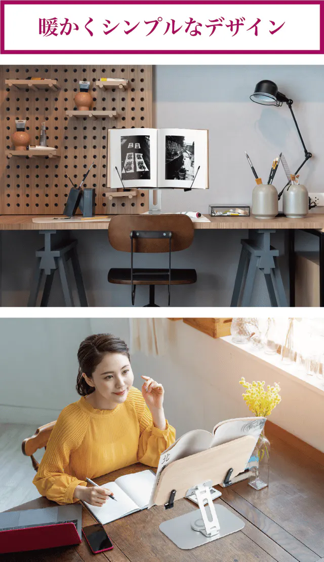 重い本を持ちながら読むのは大変だし、机に置くと見る角度が不自由。そんなときも【リブレリア】なら分厚く重い画集や写真集、辞書や図鑑などの大型本もしっかりホールドします。これからはもう重い本を持つことなく読書に集中して楽しむことができます。