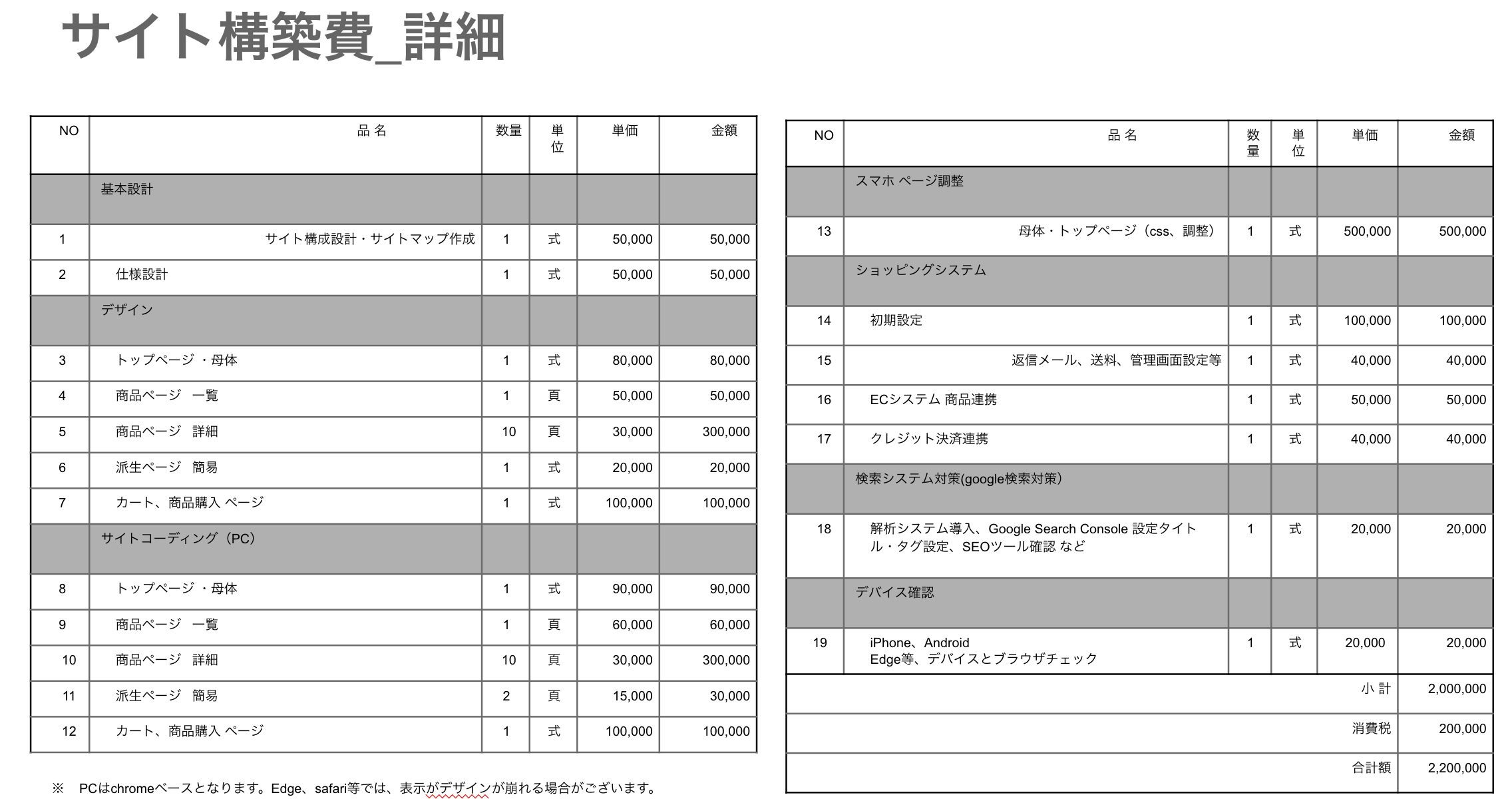 ―越境ECやCRMを含むと、構築額が倍増する為、今回は国内向けに限って仕様設計します。