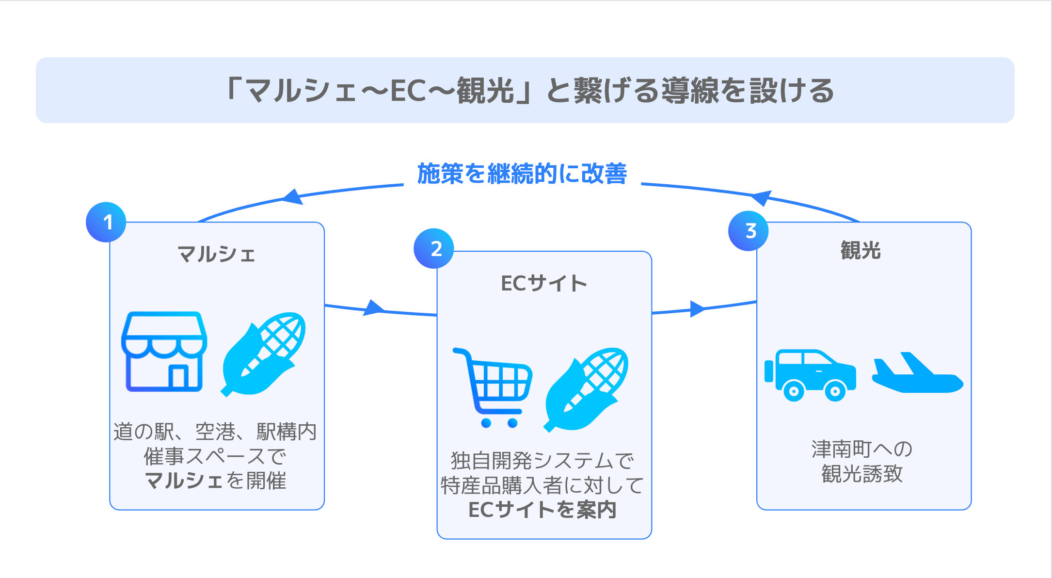 そして、津南ブランドを気に入ってくれた方をECサイトへ誘導する仕組みを設けることで、何度でも津南ブランドを体験してもらうことができます。
