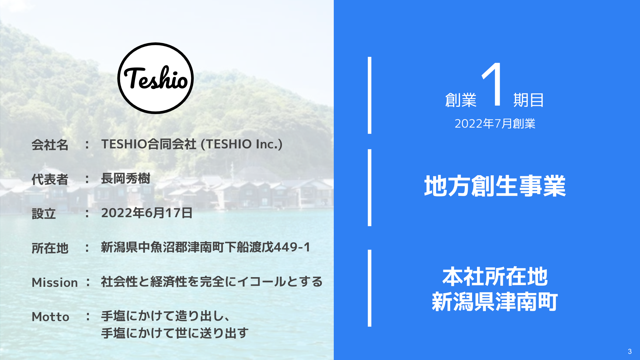 TESHIO合同会社を法人登記させていただきました。社名の由来は、企業ミッションでもある、