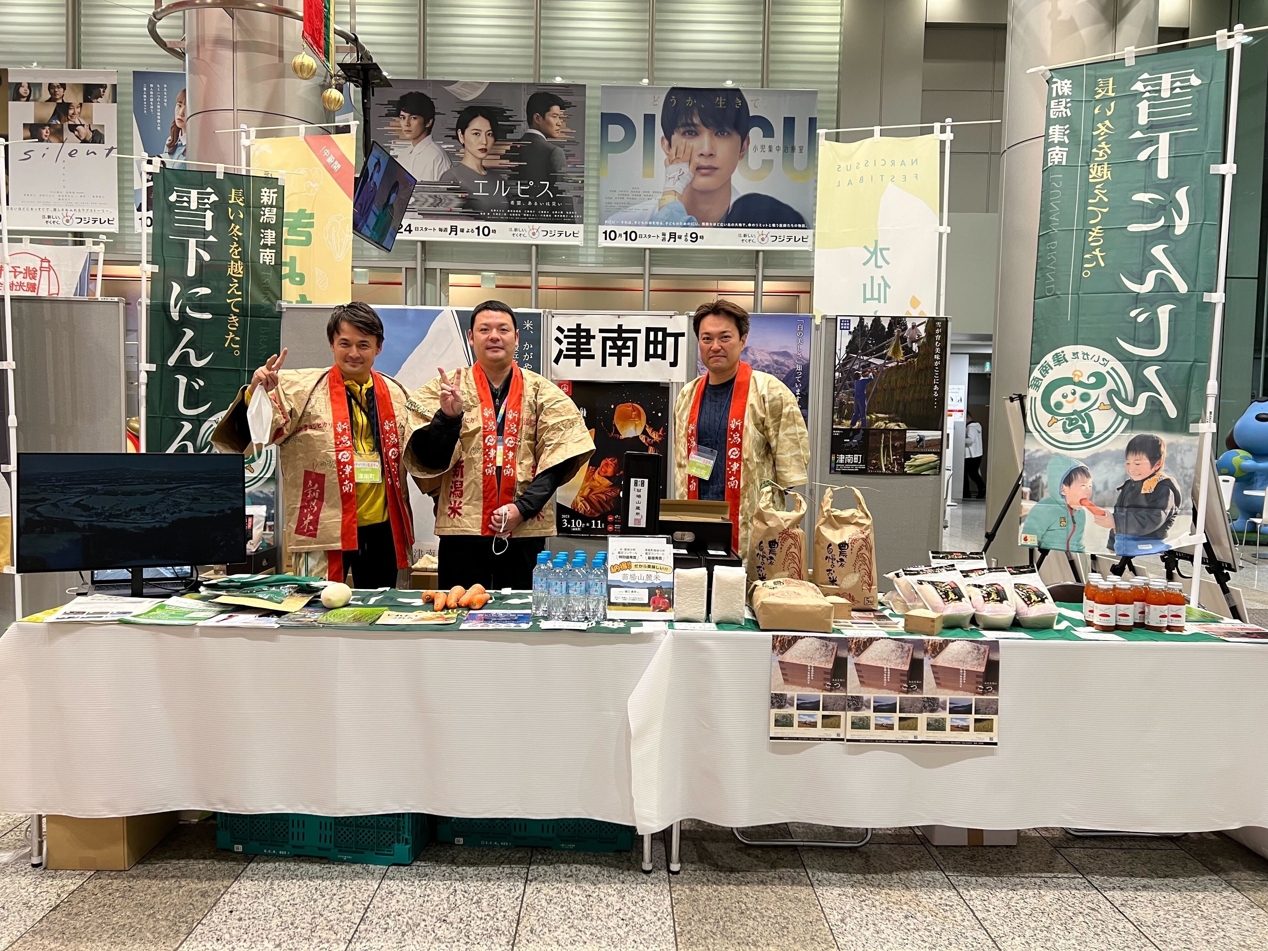 一方で、空港、駅、道の駅など多くの人が行き来する場所には、目にとまりやすい催事スペースがあり、そうしたリアルの場でまず津南の特産品を実際に見て味わって購入できる機会を作ります。