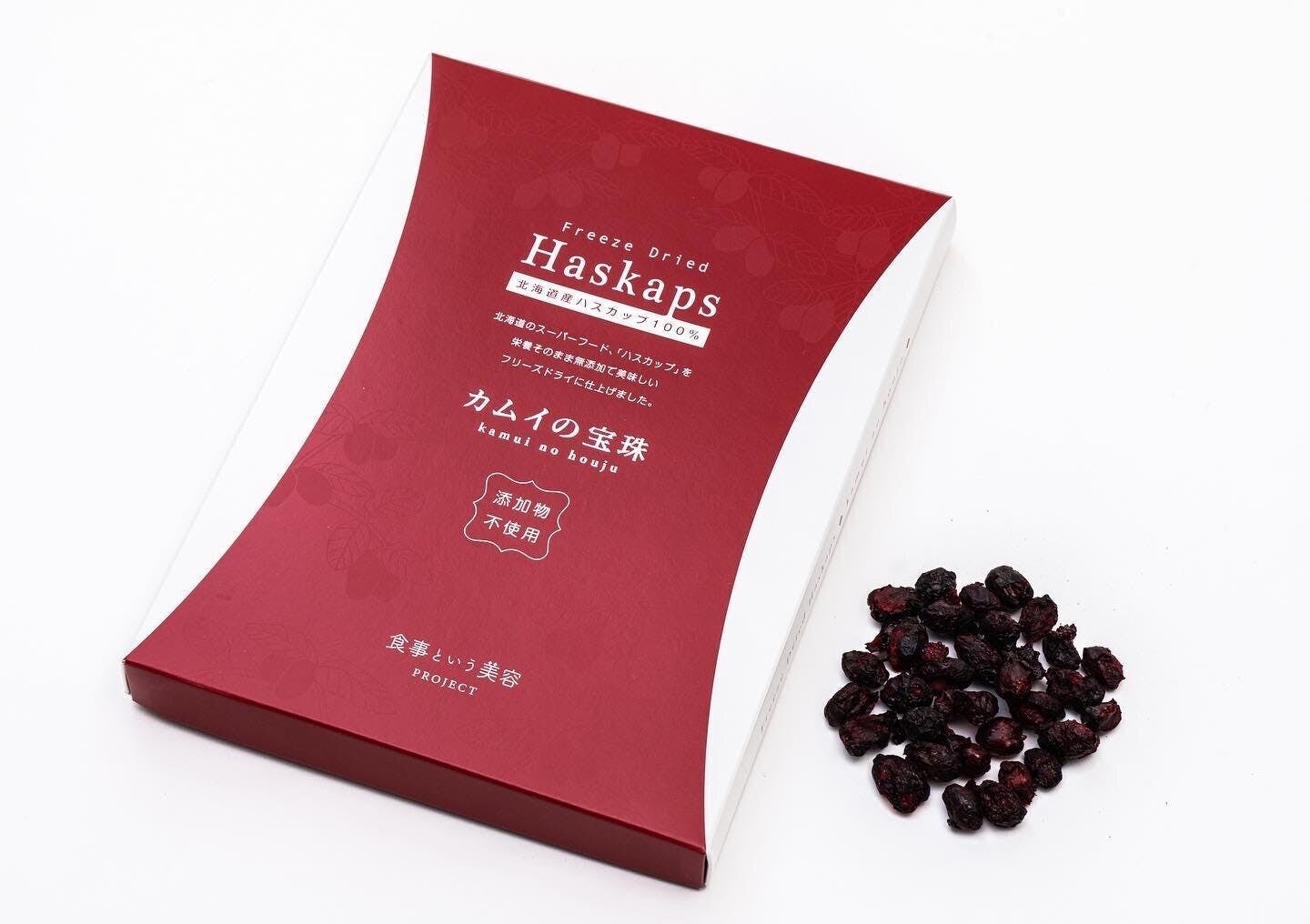 ハスカップ協会と共同開発したハスカップフリーズドライ「カムイの宝珠」。