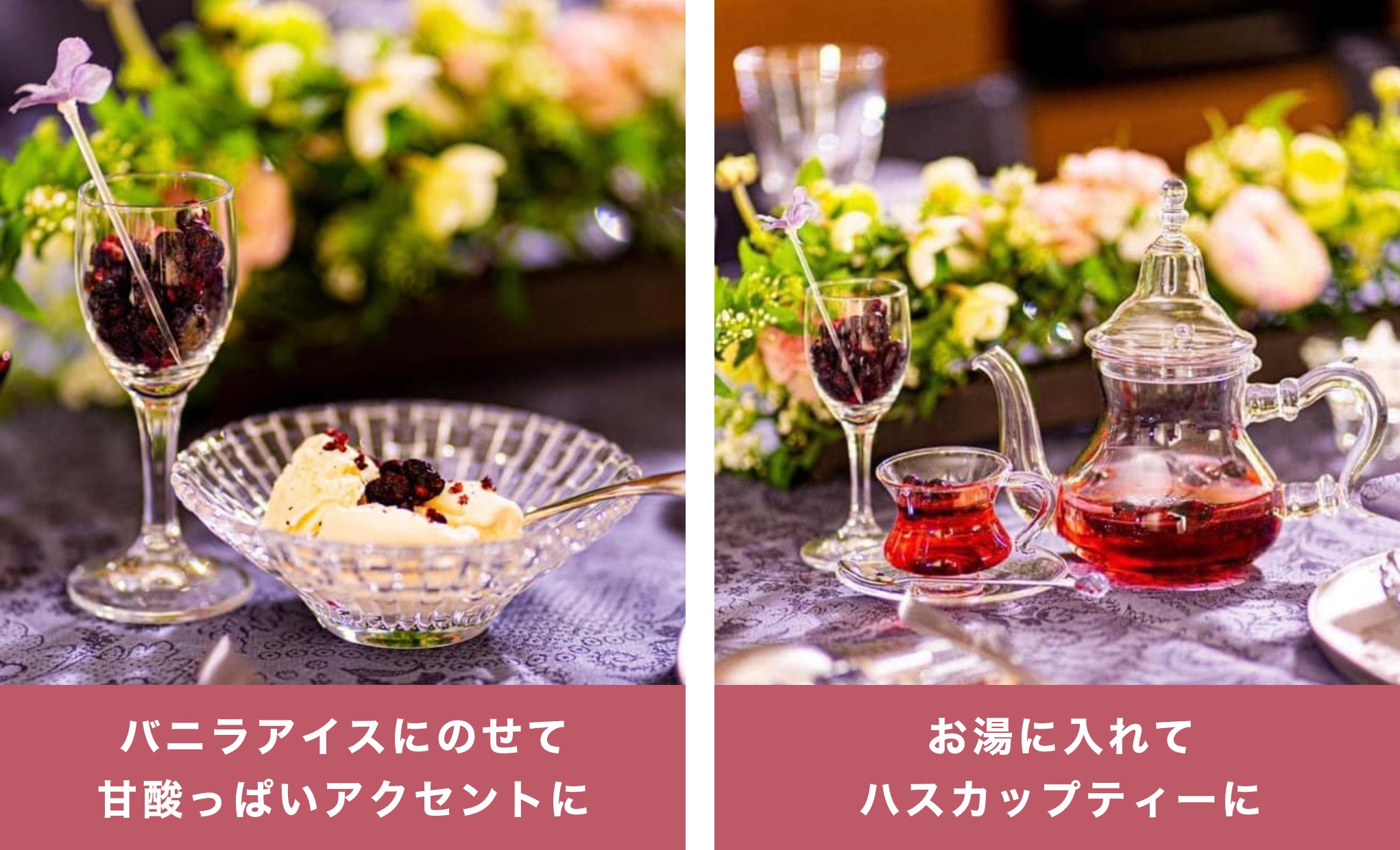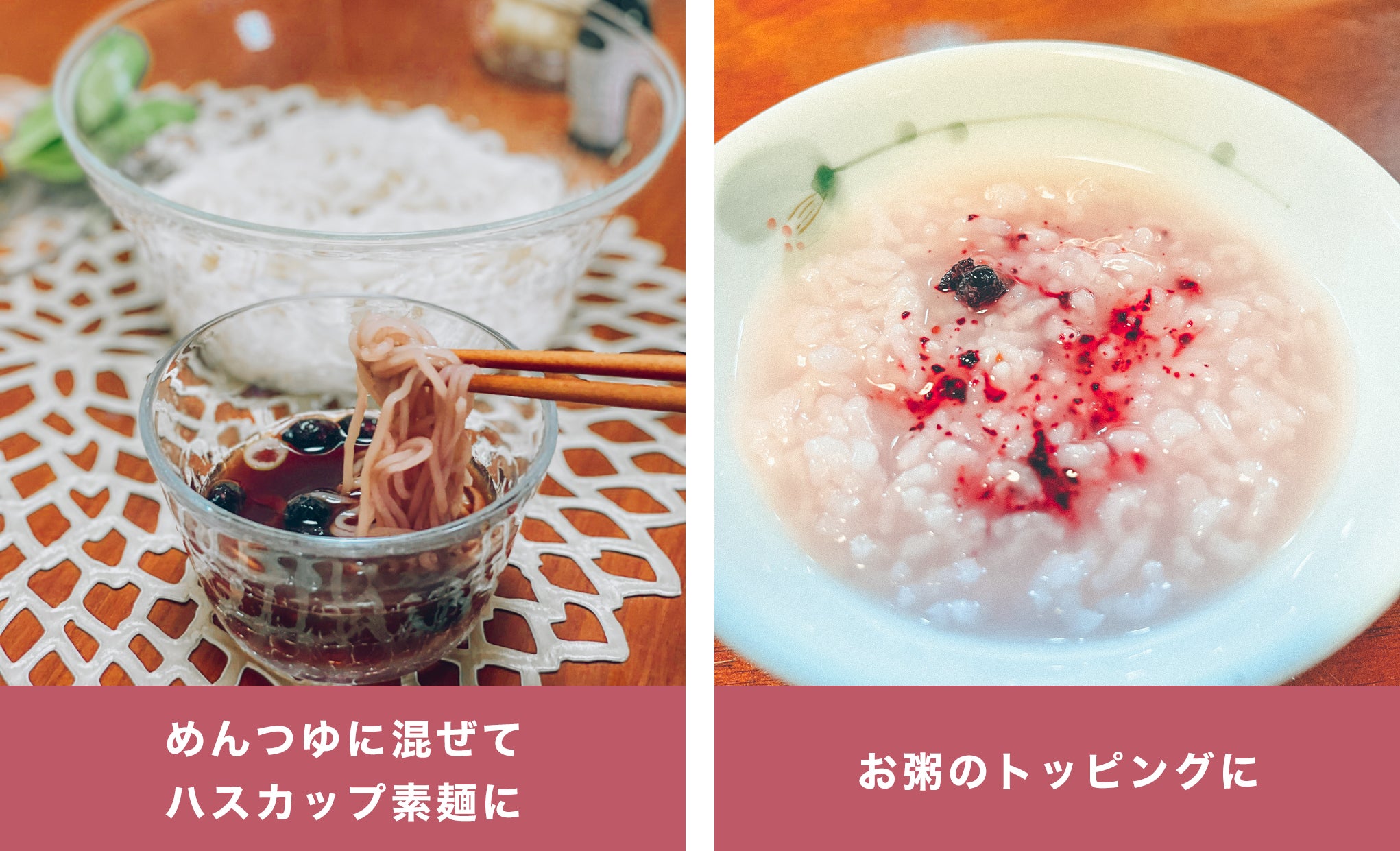 ハスカップフリーズドライをお料理に加えると、健康的で楽しい食事になります。ぜひ色々なお料理と合わせて楽しんでみてください。