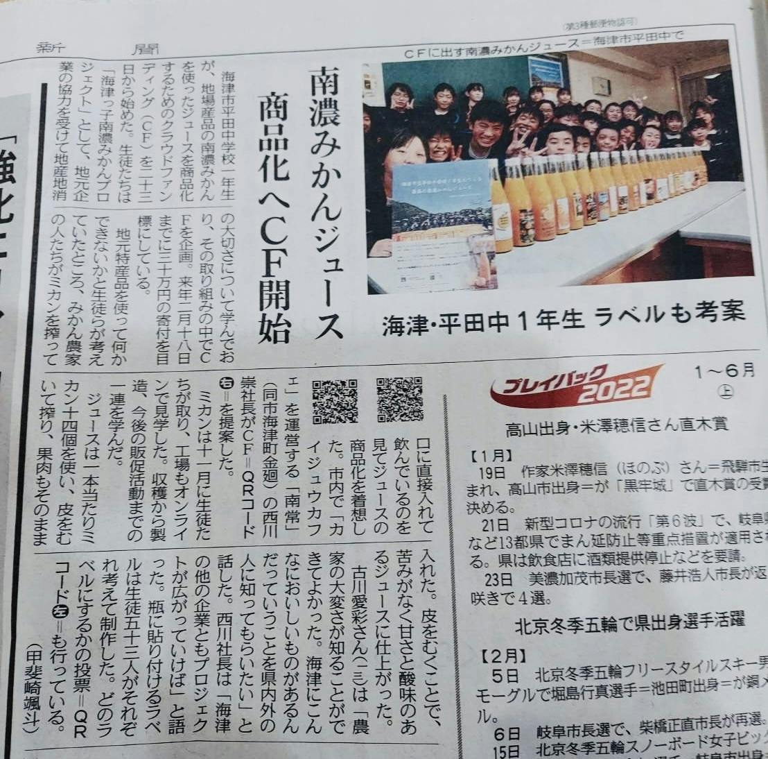 こちらの画像は12月23日の授業の中でクラウドファンディングを開始し、地元の新聞に取材を受けた記事になります。